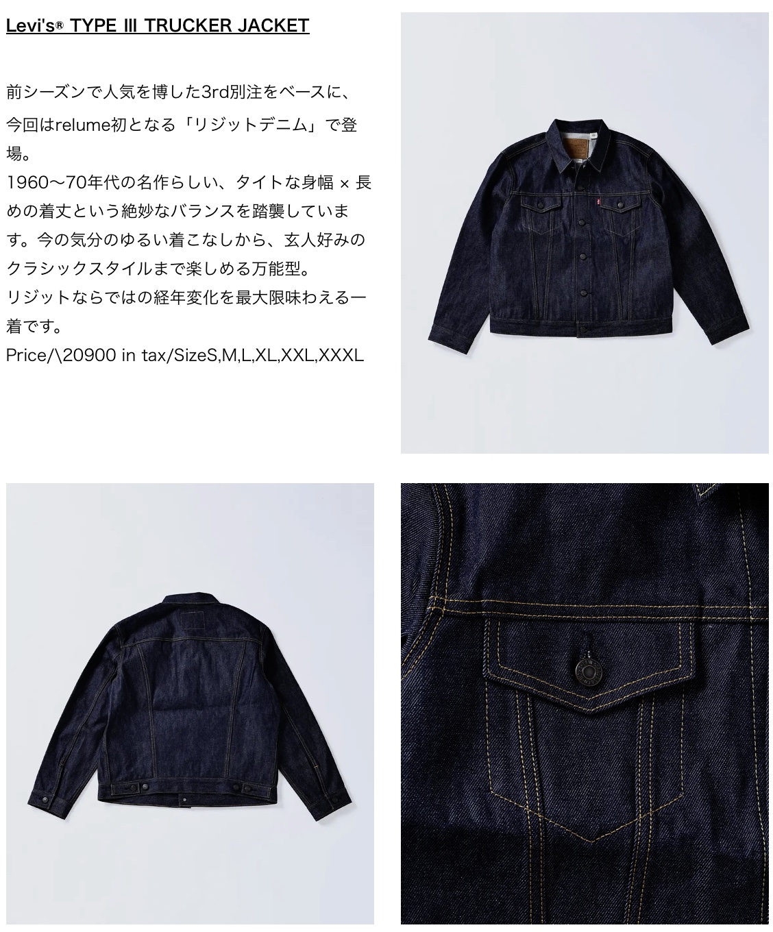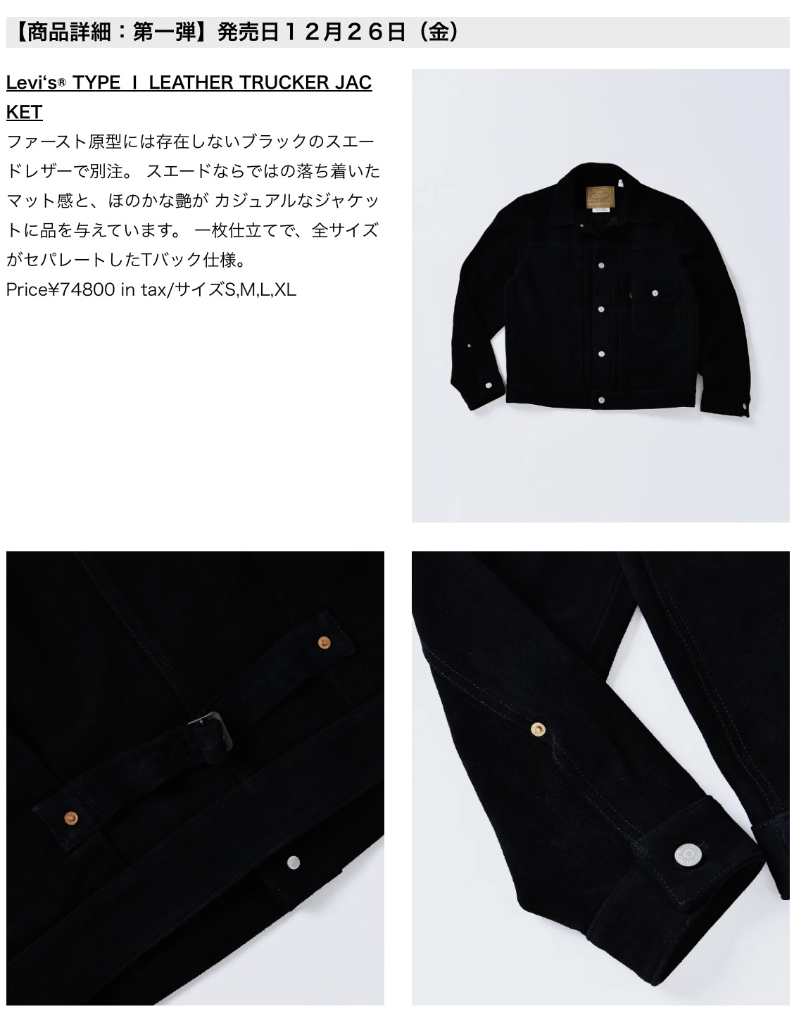 株式会社ベイクルーズ Levi’s® | JOURNAL STANDARD relume名作アーカイブを現代的に再構築した別注コレクションをリリース。 12月26日(金)にスウェードトラッカージャケット、初売りでリジットデニム3型を発売。 (2025.12)