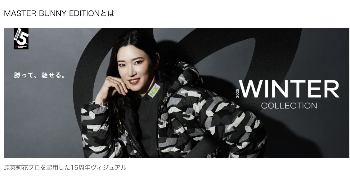 プロ達がツアーで戦うための本格的な機能を持ったウエア、プレーに集中して戦闘態勢に入ることのできるウエアを求めて、2010年春に『MASTER BUNNY EDITION』誕生。15周年を迎え、これからも『勝って、魅せる。』をブランドコンセプトに、“勝ちたい気持ちをつくる服”を提案してまいります。
