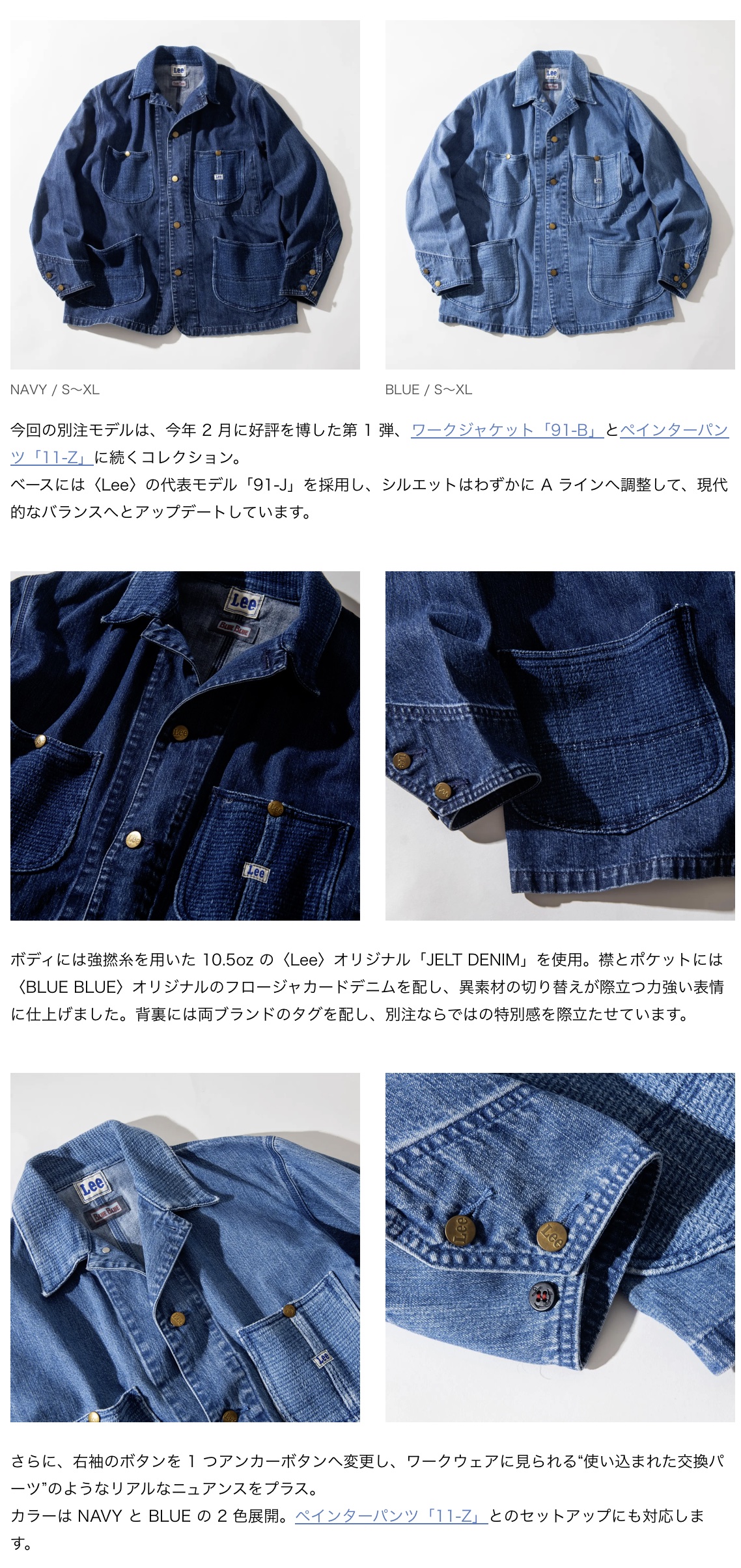 今回のコレクションでは、〈Lee〉を代表する「91-J」をベースに、タイムレスに着用できる別注モデルをご用意しました。