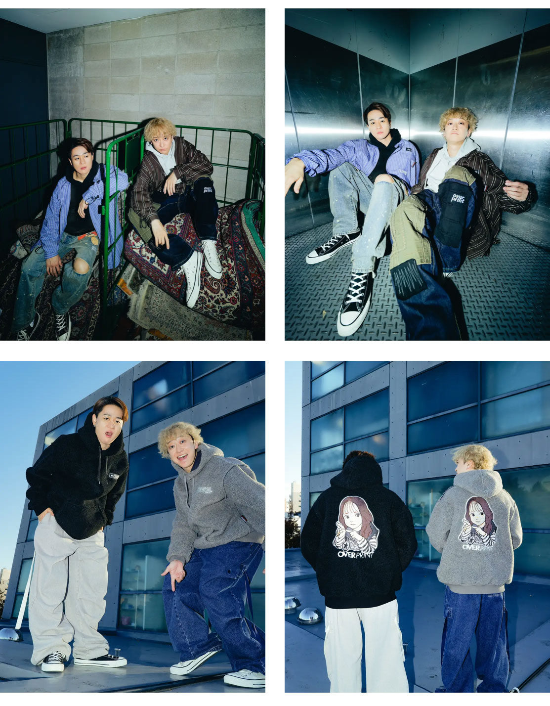 2019年にローンチしたover printは、retro50% : street50%をコンセプトに掲げ、オンラインストアと全国19店舗のセレクトショップを中心に展開するストリートブランドです。00年代裏原宿ストリートスタイルを軸に、ロック/スケート/ワーク/ミリタリー/古着/90Sコミック・アニメなどとレトロミックスし「今の気分」として提案しています。