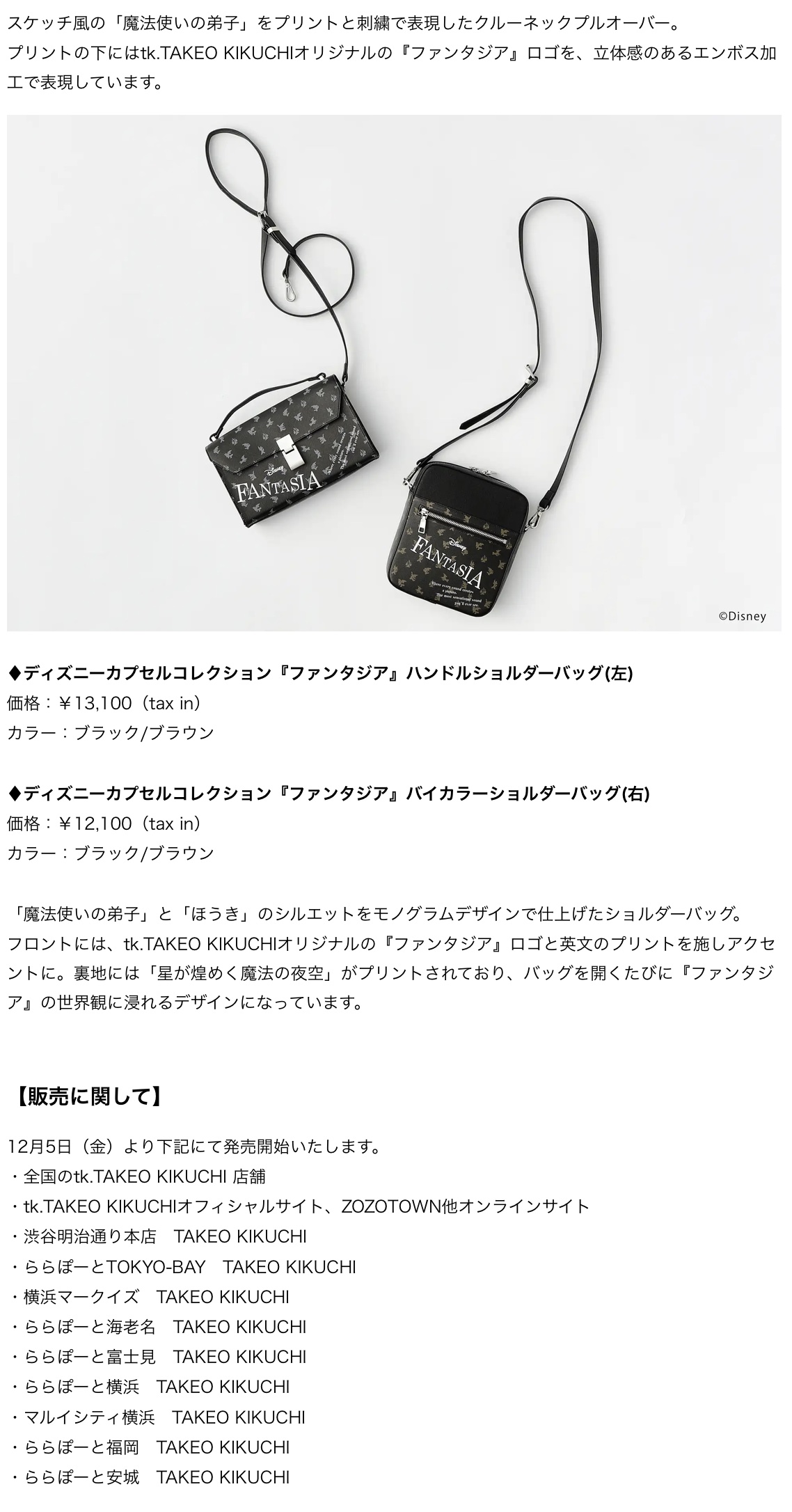 株式会社 ワールド 【tk.TAKEO KIKUCHI】ディズニーカプセルコレクション第5弾『ファンタジア』をモチーフにした商品が12月5日(金)より登場! (2025.12)
