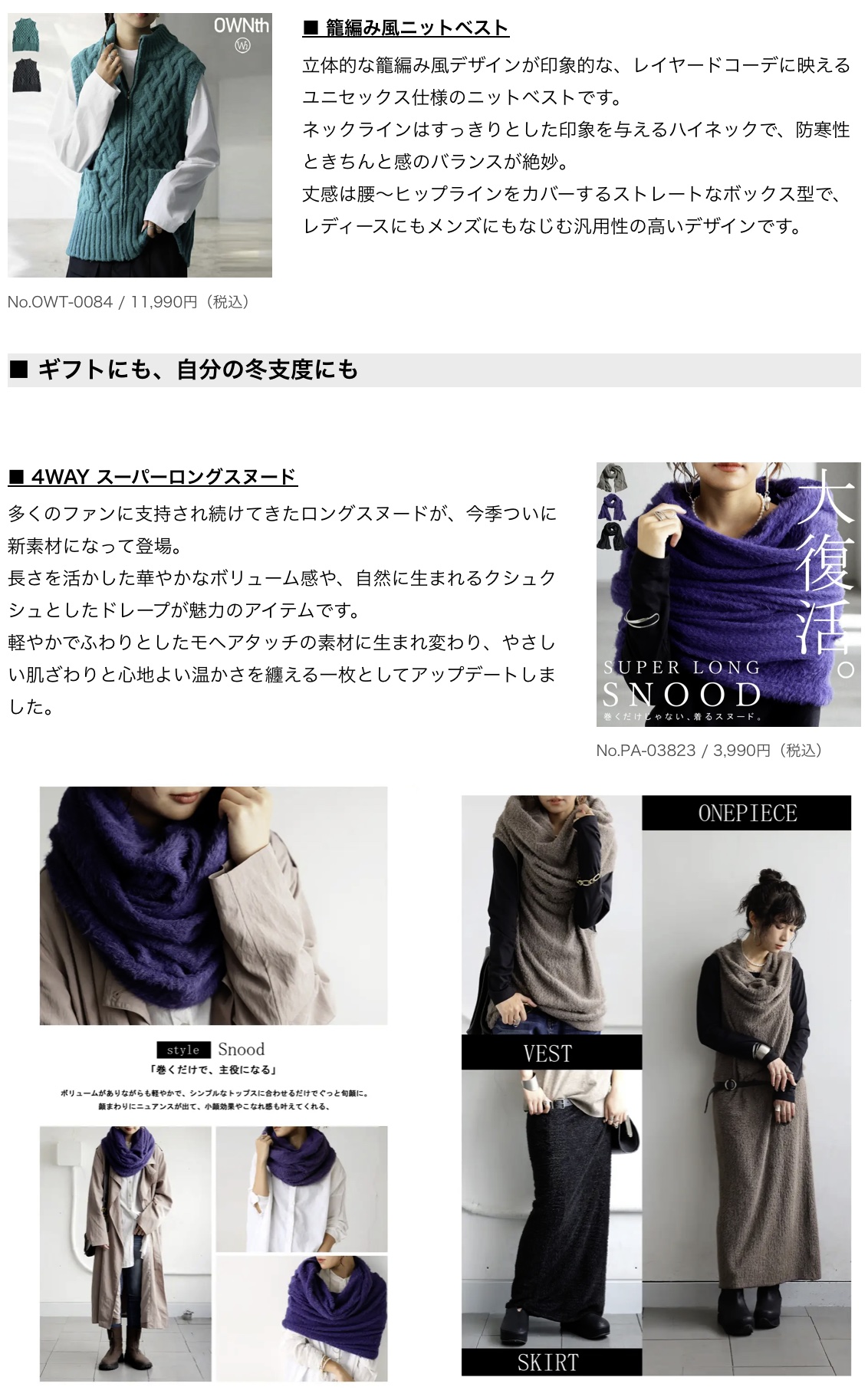 クリスマス雑貨、ホリデー気分を盛り上げるインテリアアイテム、そして冬の装いをつくるアウターやニットなど、多彩なカテゴリーを横断したラインナップが一つのページに集結。