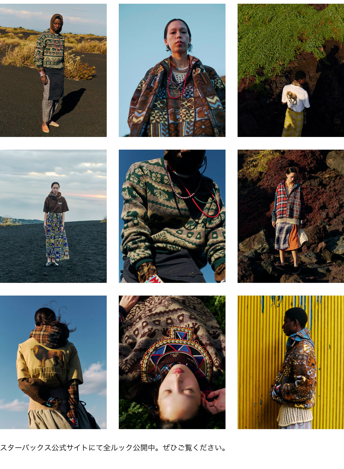 2025年秋冬のテーマは、スターバックスの定番コーヒー豆の産地“KENYA”。雄大な自然や多様な文化から着想したカラーリングと、アフリカゾウ、ラテアート、スターバックスのカップ、コーヒー豆などをモチーフにしたオリジナルパターンを組み合わせ、コーヒーカルチャーをまとうような全6型13アイテムを展開します。