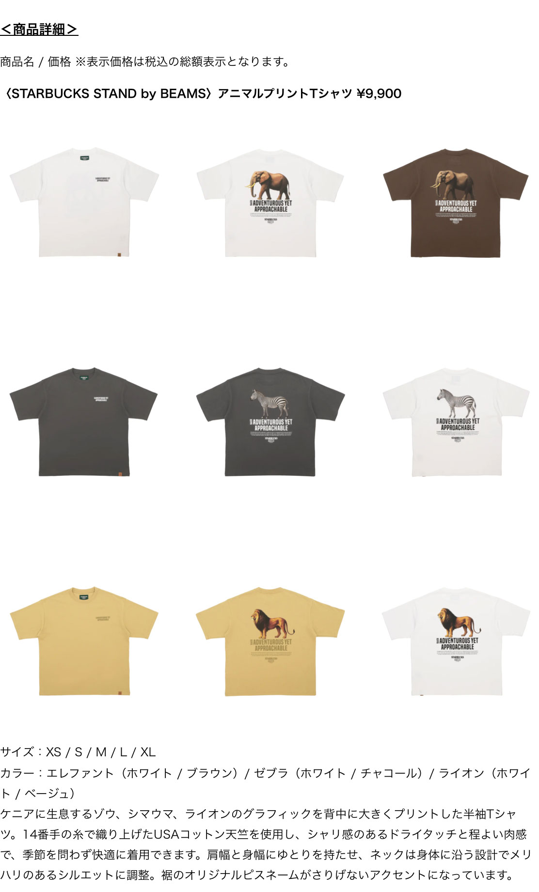第一弾となる今回は、コーヒー豆の生産地“KENYA(ケニア)”をテーマにした全6型13アイテムを、12月12日(金)より「ビームス ライフ 横浜」および「スターバックス公式オンラインストア」にて発売します。なお、「ビームス ライフ 横浜」では、ラインナップに加えて本コレクションのパターンを採用したクッションも展開。空間にもコーヒーカルチャーを取り入れられる特別アイテムとしてご用意しています。
