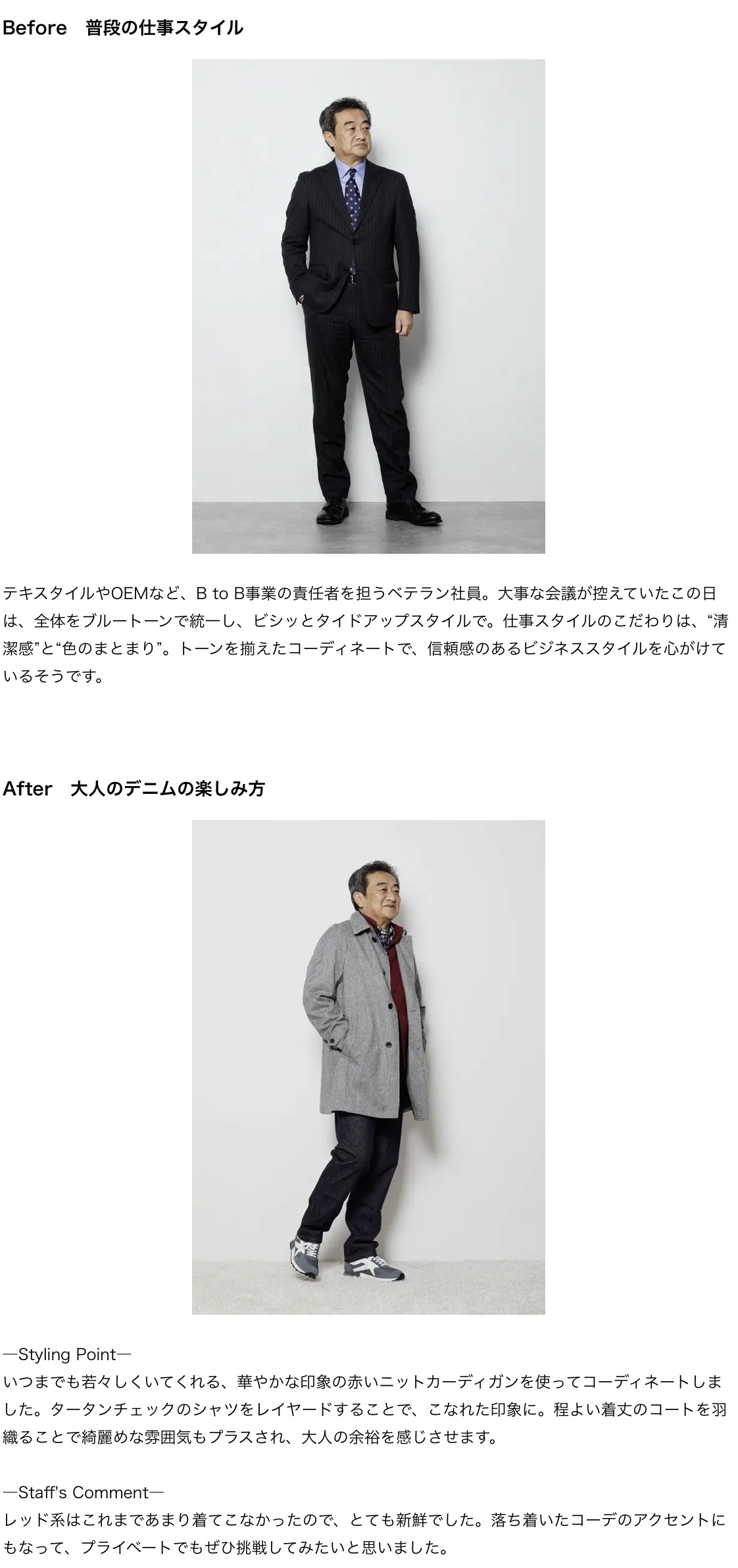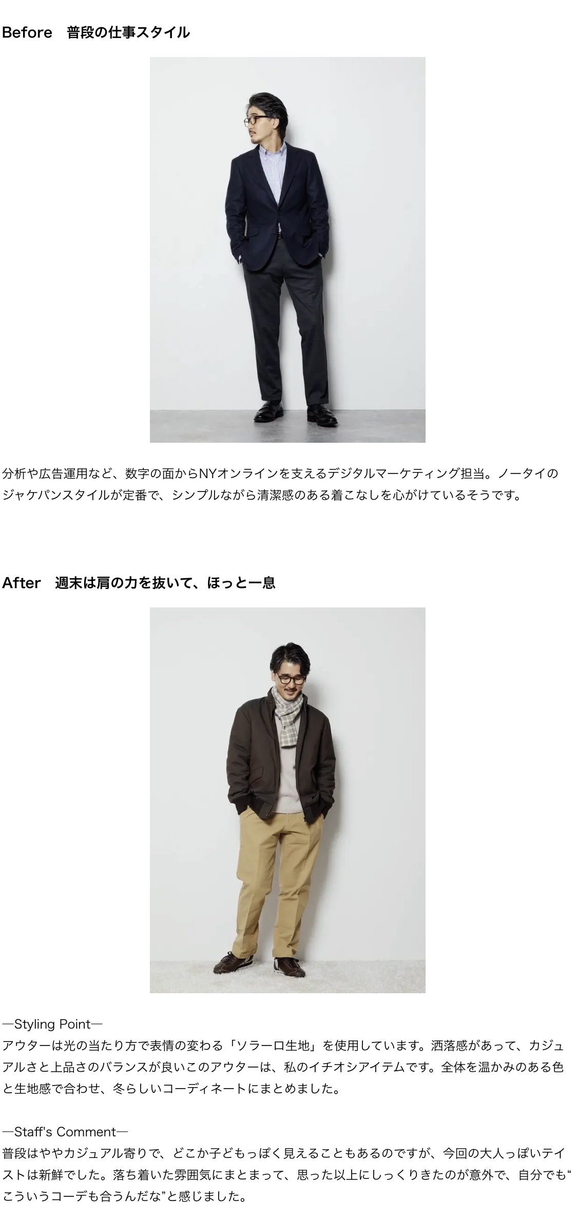 衣料事業の主力ブランドNEWYORKERを中心とした衣料服飾品の企画、製造、販売、不動産の売買、仲介、賃貸管理を行っている株式会社ダイドーフォワード(本社:東京都千代田区/代表取締役:成瀬 功一郎)は、特集コンテンツ「休日スタイルの正解『スーツの似合う大人ほど、休日もかっこよく』」を⾃社通販サイトで公開しました。
