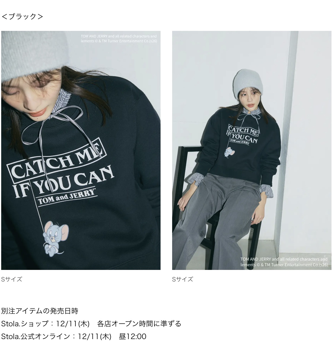 アイア株式会社 【Stola.(ストラ)】12/11(木)『トムとジェリー』の人気キャラクター"タフィー"が主役の別注スウェットを発売! (2025.12)