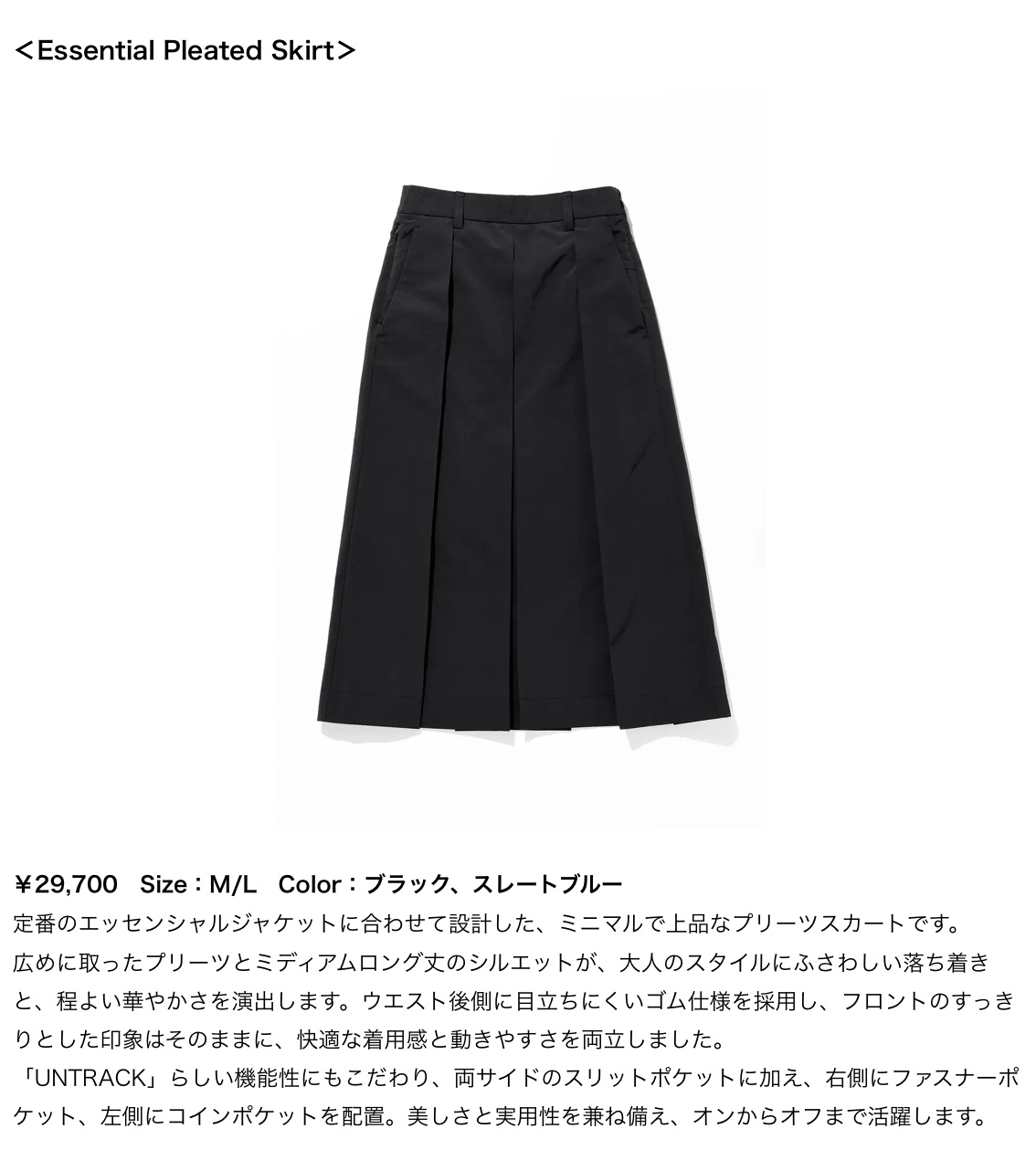 エース株式会社 「UNTRACK」ブランド初のスカートアイテムを、直営店「UNTRACK Harajuku」にて先行販売 “ポケット不足”を解決する、収納性を持たせたデザイン (2025.12)