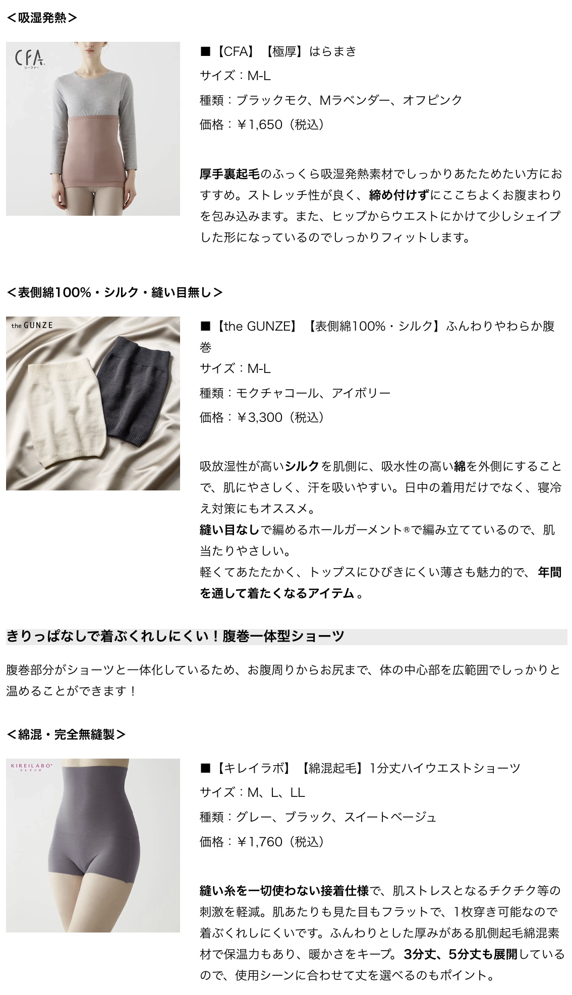 今回は、体が冷えやすい冬至の時期に合わせて “温活”にぴったりなグンゼの腹巻や腹巻一体型ショーツをご紹介します!