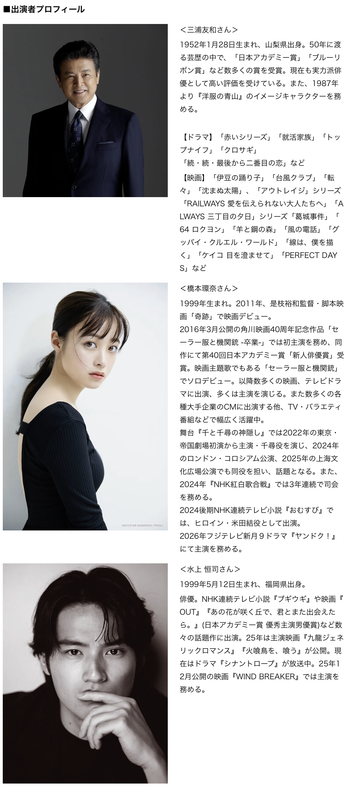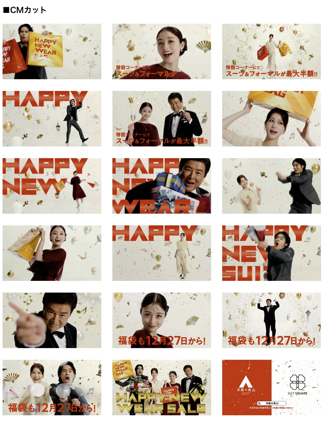 青山商事 三浦友和さん・橋本環奈さん・水上恒司さん・生見愛瑠さんが初共演!「洋服の青山」新CMで“HAPPY NEW WEAR”をお祝い ~紅白のパーティードレスやタキシード姿で華麗なダンスを披露、餅つきをイメージしたシーンも~ (2025.12)