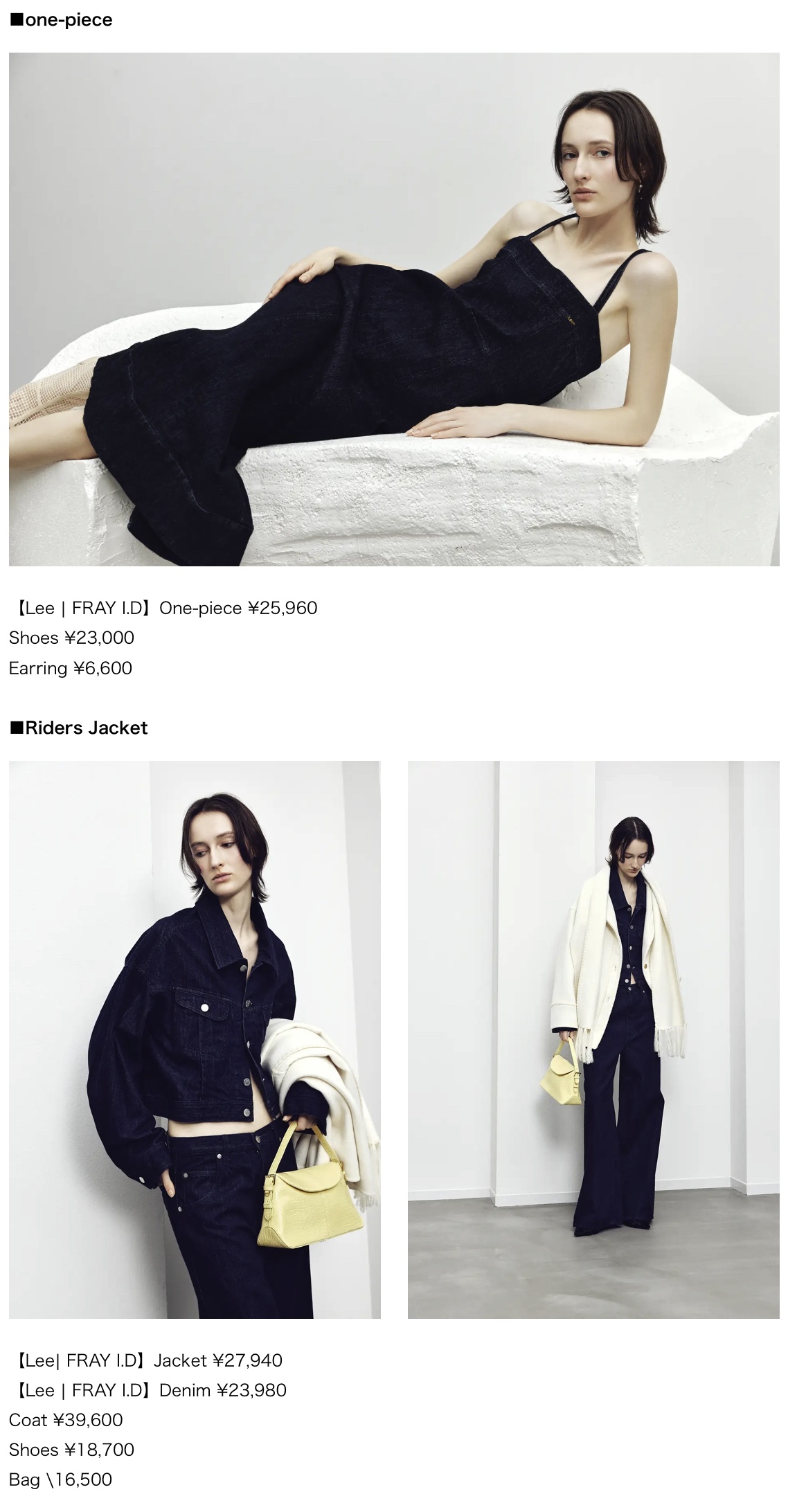 株式会社マッシュホールディングス 【FRAY I.D(フレイ アイディー)】がLeeとのスペシャルアイテムを発売!<12/24(水)WEB先行予約・1/15(木)店頭発売> FRAY I.Dオリジナルデザインのワンピースやシルエットに拘ったデニムジャケット、スタイルアップを叶えてくれるデニムパンツなどカジュアルアイテムに女性らしさをプラスした全4型が登場! (2025.12)