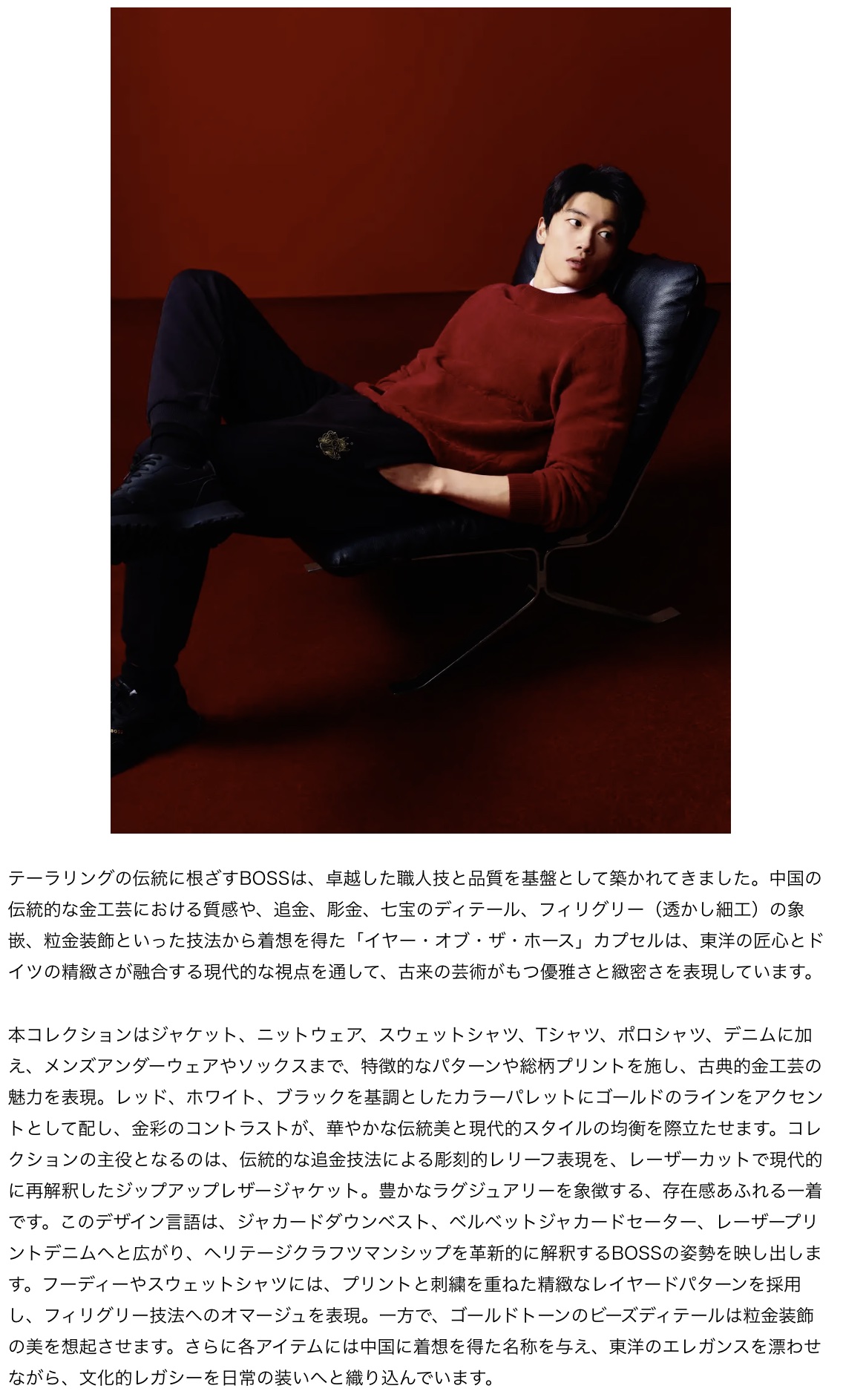 ヒューゴボスジャパン株式会社 伝統へのオマージュ:BOSS、ワン・シュンとともに「イヤー・オブ・ザ・ホース」カプセルコレクションを発表 (2026.1)