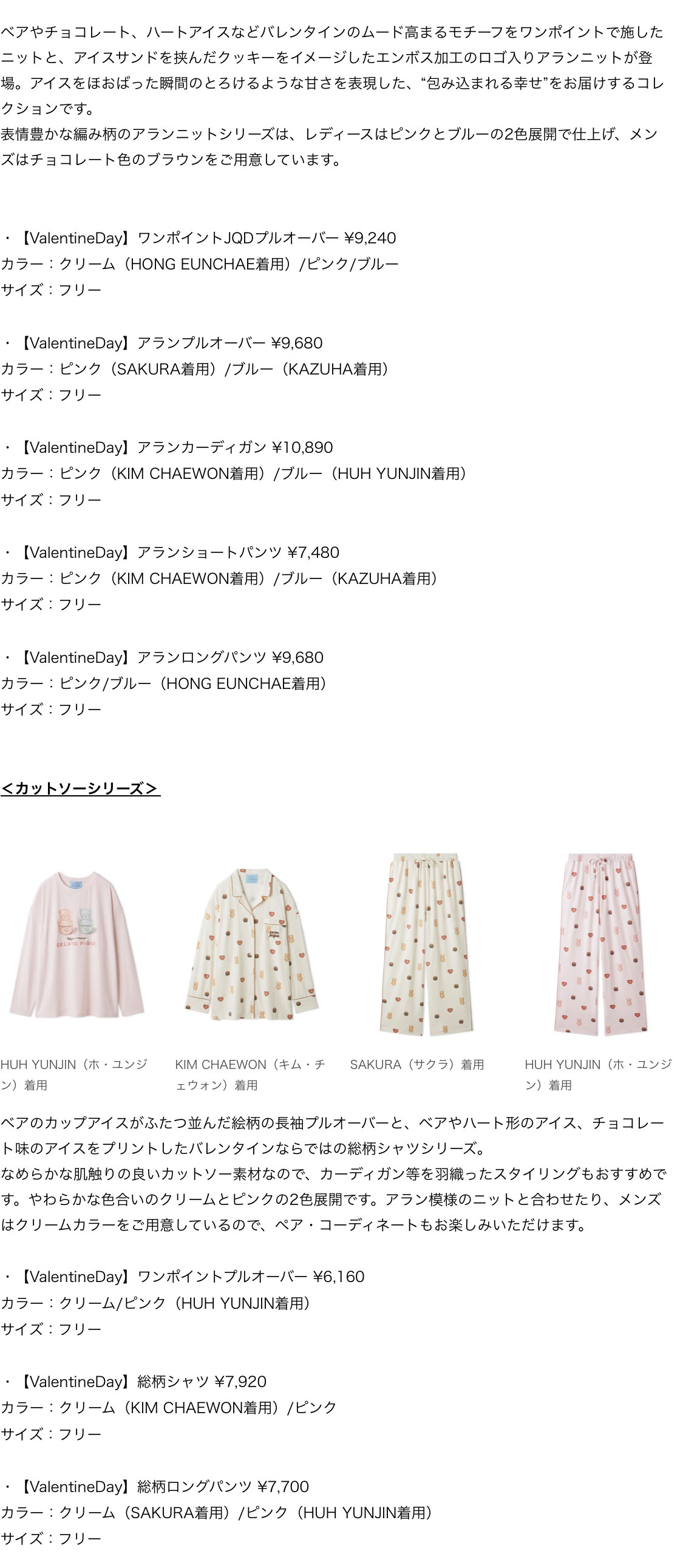 第1弾として「LE SSERAFIM(ルセラフィム)」が着こなす「Valentine’s Sweet Bear Collection with LE SSERAFIM」の特設サイトを1月15日(木)12:00(正午)より「ジェラート ピケ 公式オンラインストア」、ECデパートメントストア「USAGI ONLINE」にて公開いたします。