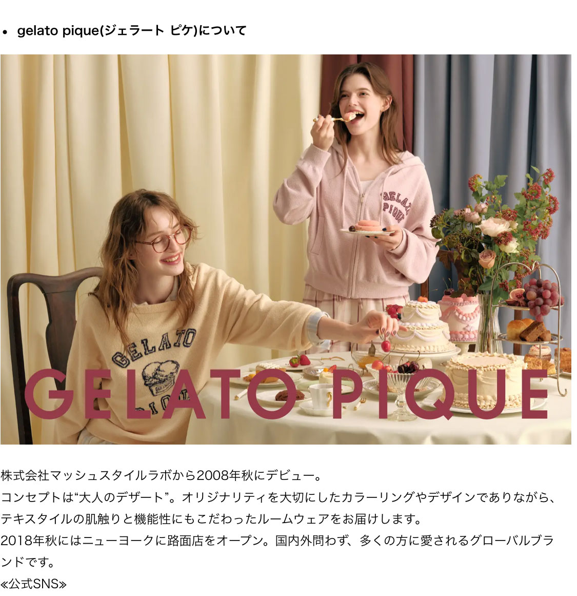 ・gelato piqueオフィシャルオンラインストア:https://gelatopique.com/