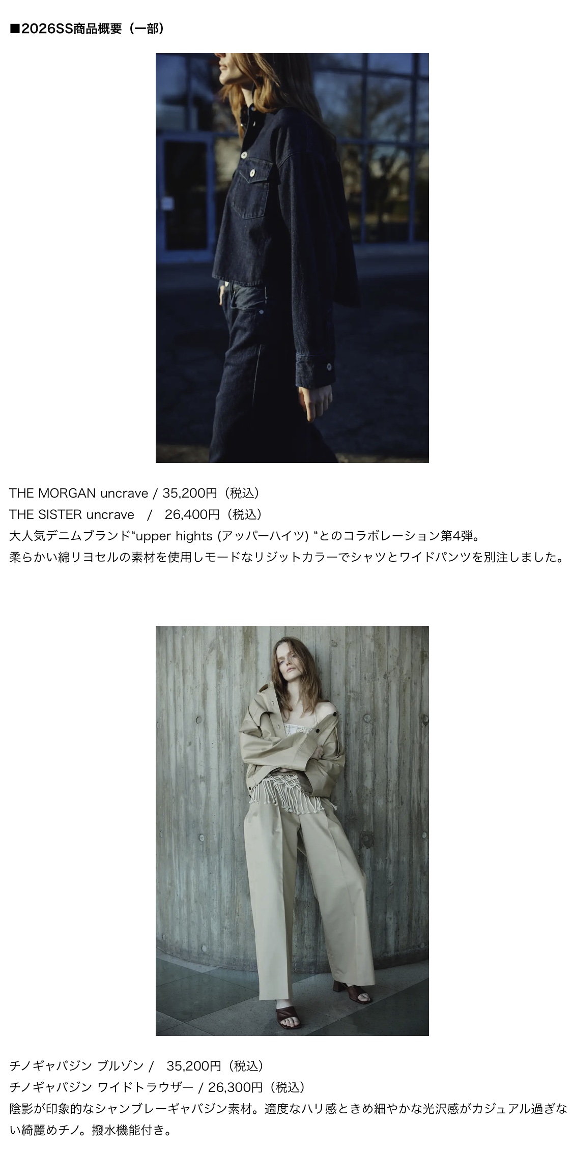 『uncrave』の2026SSシーズンのキーワードは、「Less is more -少ないことは、より豊かなこと-」。