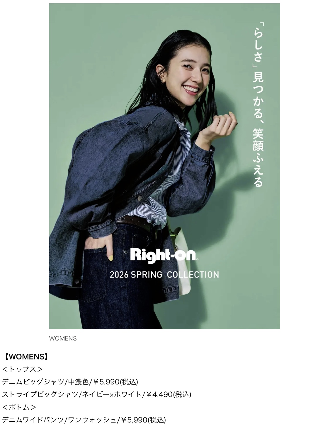 株式会社ライトオン デニムを主軸にした2026年春のシーズンビジュアルを公開 オリジナルデニムを強化し、多様な「らしさ」を提案 (2026.1)