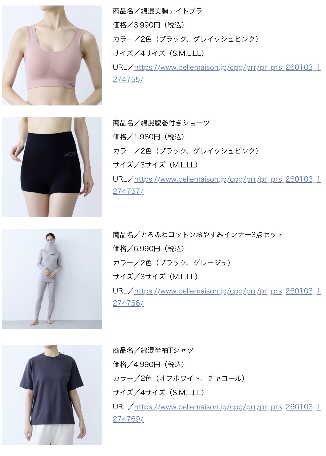 株式会社千趣会 “着るだけ”でめぐり、整える 大人女性のための“着るだけ血行促進※ウェアシリーズ”「リカバミー」を1月26日(月)より販売開始 ~ナイトブラやパジャマなど、40~50代の悩みに寄り添う全5アイテムを展開~ (2026.1)
