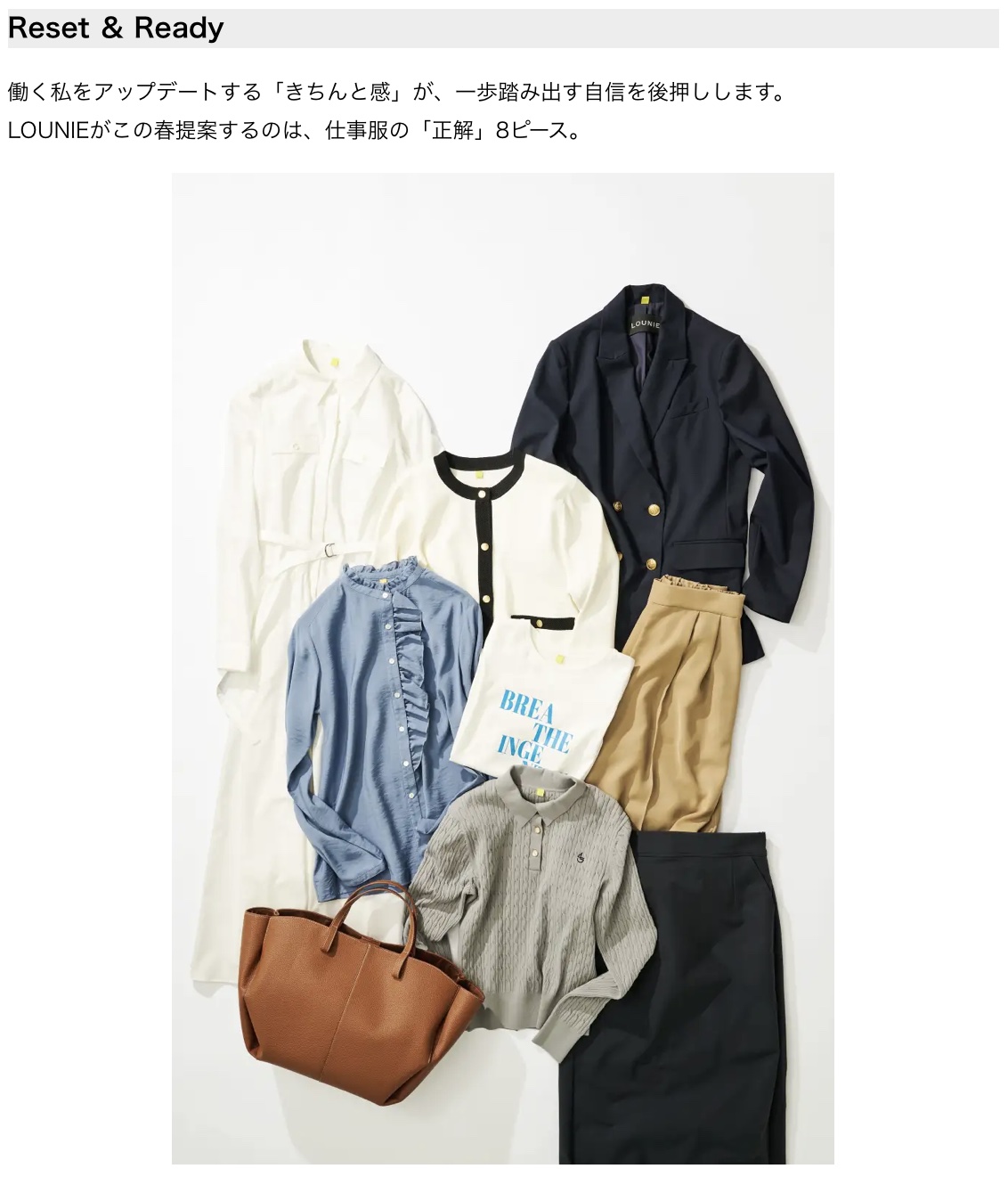 アイア株式会社(本社:東京都渋谷区/代表取締役 石澤智子)が展開するレディースファッションブランド「LOUNIE(ルーニィ)」は、2026年春、新生活に向けたスタイリング提案として「RESET & READY」シリーズを発売いたします。
