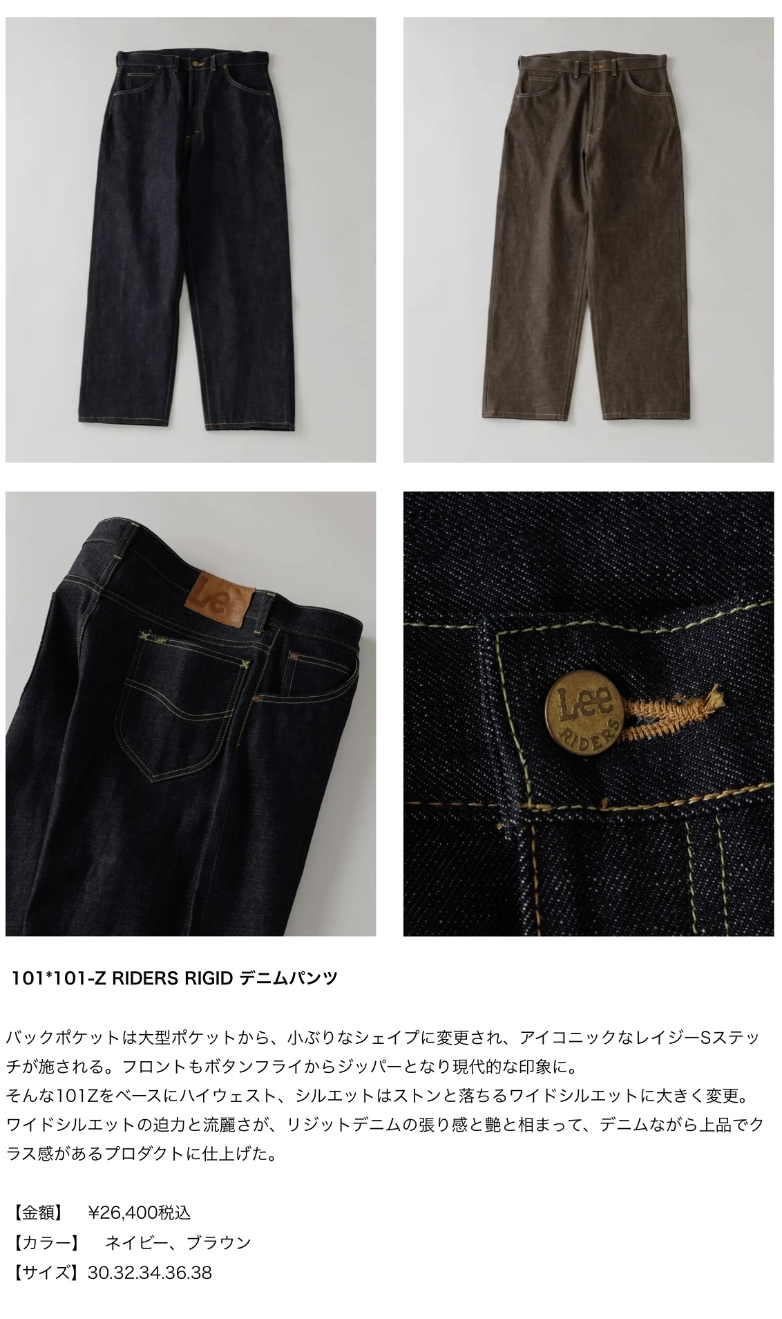 株式会社ベイクルーズ 【LEE for EDIFICE】101-J/101-Zをベースに現代的にアップデートしたセットアップを発売。 (2026.1)