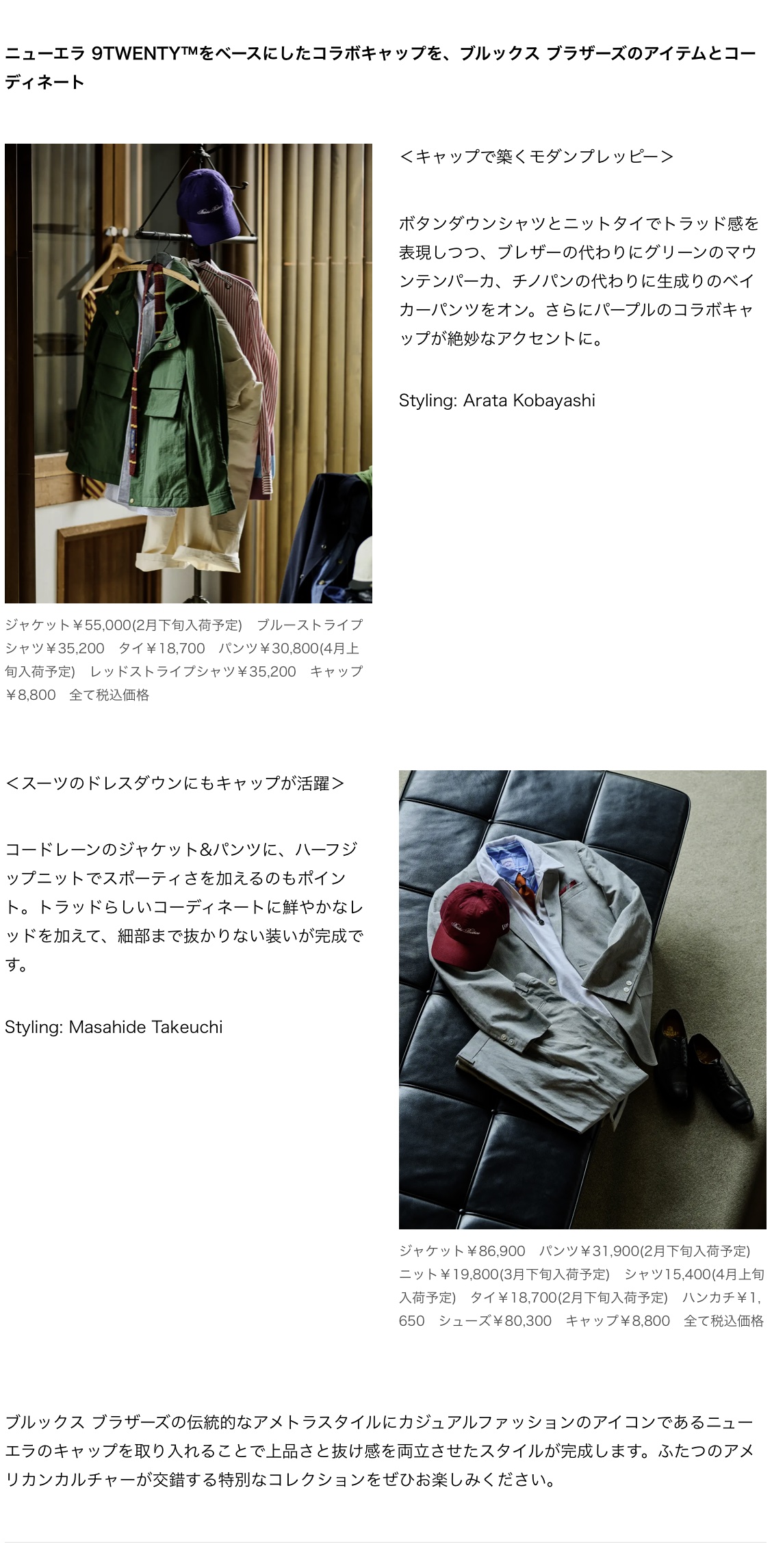 株式会社ブルックス ブラザーズ ジャパン (東京都品川区、代表取締役社長:新倉修司、以下 ブルックス ブラザーズ)は、米国で1920年に設立されたスポーツ・ライフスタイルブランド「New Era®(ニューエラ)」とのコラボレーションキャップを発売いたします。