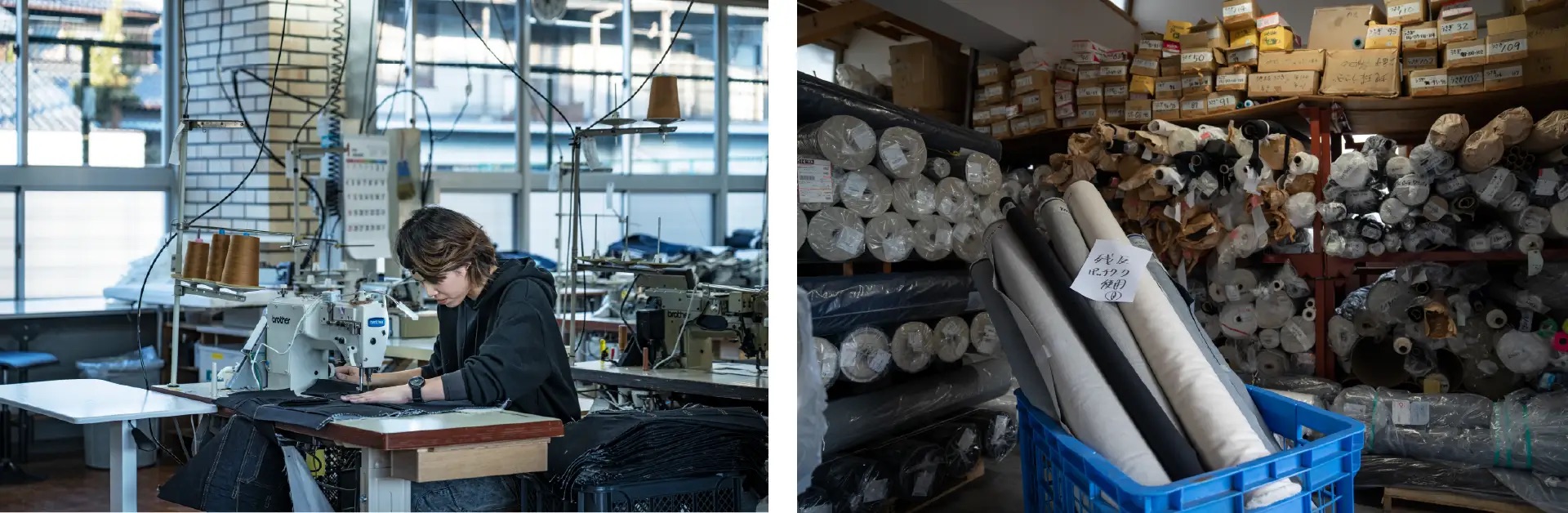 工場併設という立地を活かし、素材選びや縫製工程、品質へのこだわりを、つくる現場との近い距離で感じていただける場として運営していきます。プロダクトの販売にとどまらず、縫製工場として積み重ねてきた技術や判断、その背景まで伝えることで、「つくる現場から直接届ける」ものづくりのあり方を実現します。