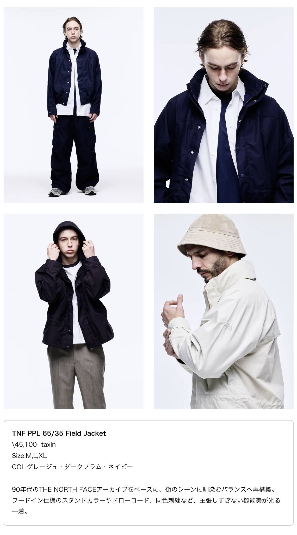 90年代のTHE NORTH FACEアーカイブをベースに、現代のスタイルに馴染むよう再構築されたマウンテンパーカ、 「もしTHE NORTH FACE Purple Labelにセットアップがあったなら」という発想から開発された、ラペルジャケットとパンツのセットアップの計3型で構成され、アウトドアウェアらしい素材使いやディテール、タウンユースの親和性を兼ね備えたラインナップです。