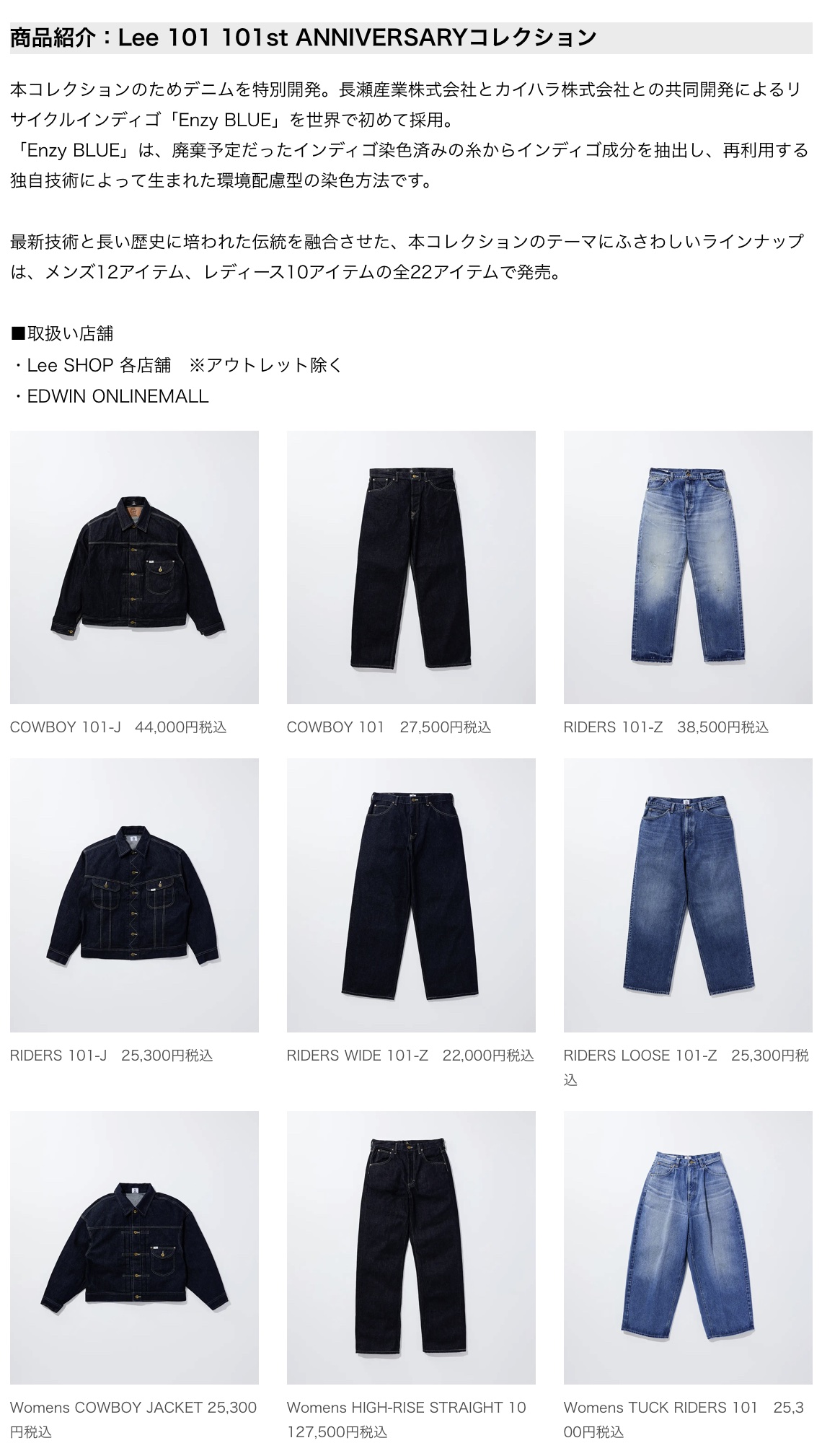この節目を記念し「Lee 101 101st ANNIVERSARY」コレクションを2026年2月1日(日)に発売。