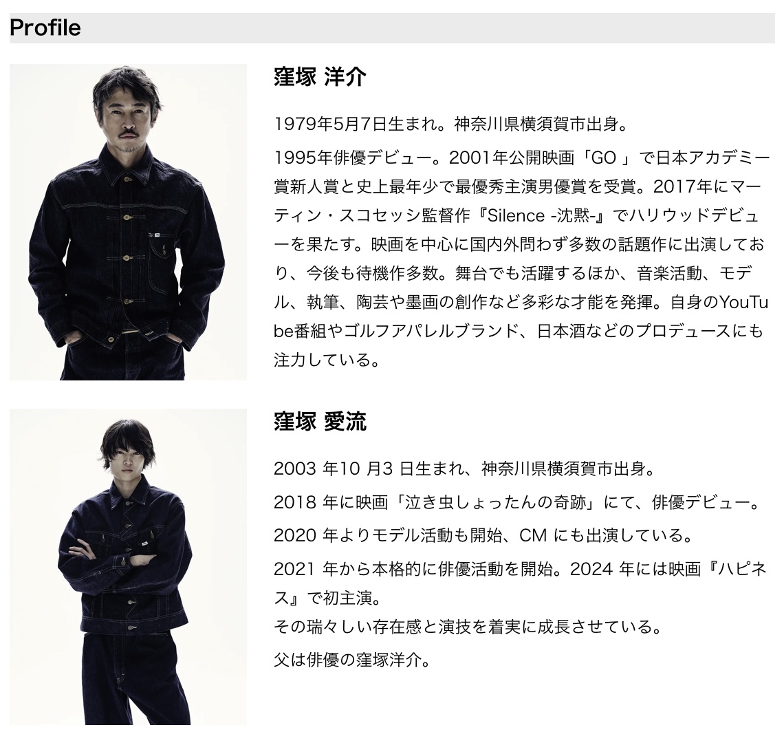 Lee 101 101周年プロモーションには、窪塚洋介氏と窪塚愛流氏の親子をアンバサダーとして起用。