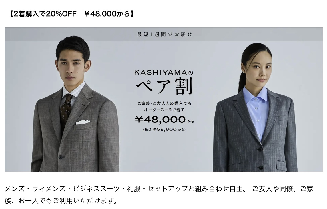 株式会社オンワードパーソナルスタイル オーダーメイドの『KASHIYAMA』ブランド初となる「親子割」を2月2日(月)から開始 親子での来店増加を背景に学生と同時購入でご両親も割引 (2026.2)