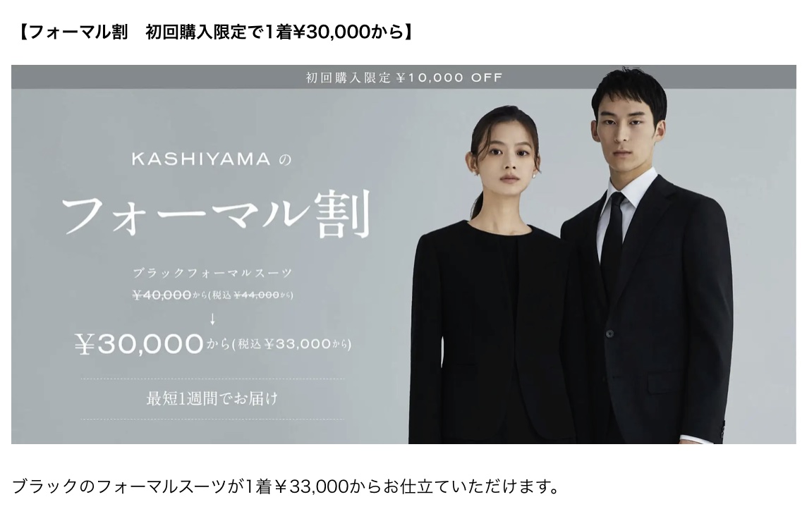 ・キャンペーン価格 :学生が「学割」を利用してスーツを購入した場合、