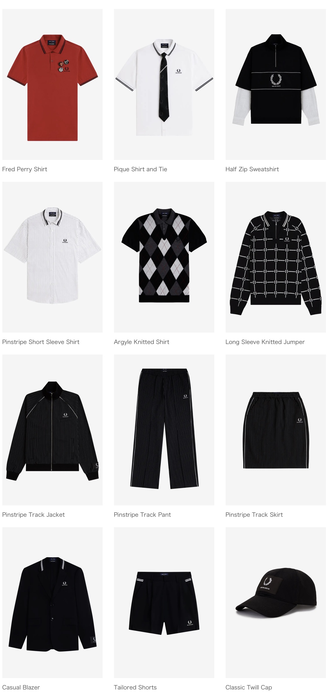 初となる今回のコレクションでは、ユースカルチャーのユニフォームを再定義してアップデートすることを目指し、フレッドペリーのクラシカルなアイテム──それぞれがスポーツとストリートの文脈を持つ、ブランドを象徴するタイムレスなピース──を彼がひとつひとつ分析し、伝統と革新のバランスを保ちながら、独自の視点で再構築しています。