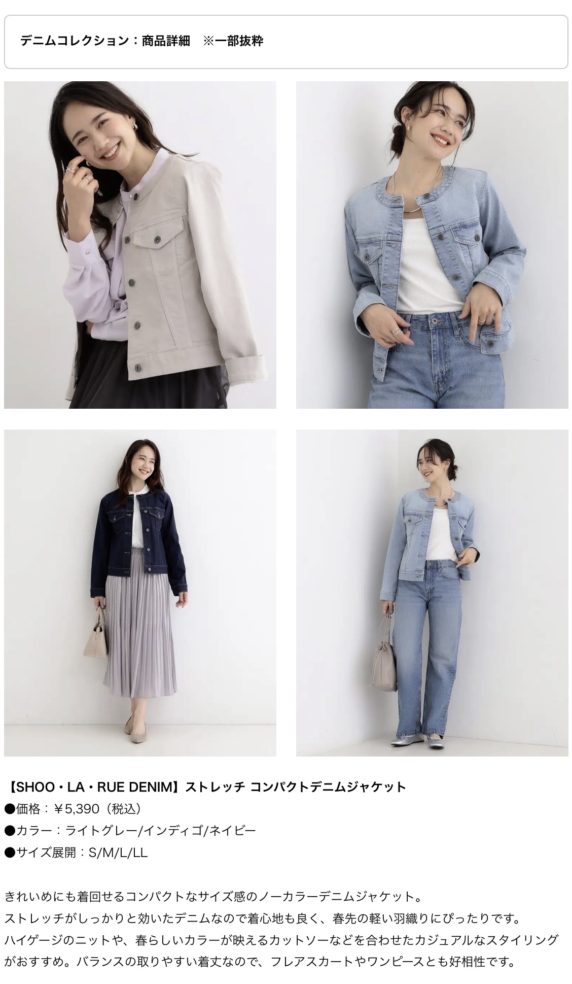 株式会社 ワールド 【SHOO・LA・RUE】定番からトレンドまで!豊富なラインナップの 新作デニムコレクションを2月6日(金)より公開 (2026.2)