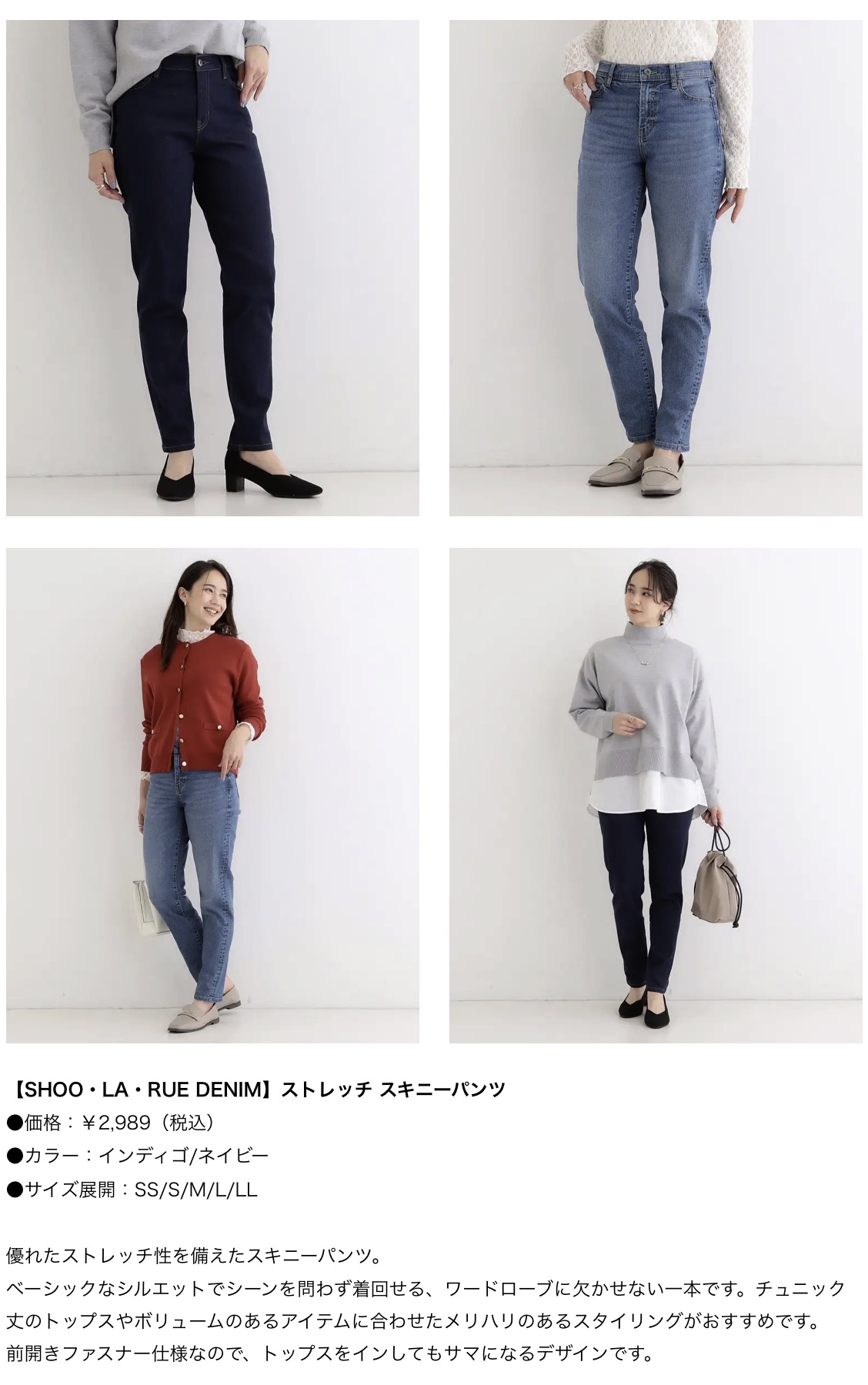 シーズンのトレンドアイテムとして今や外せない「デニム」を、シューラルーのお客様にもより身近に楽しんでいただけるよう、着心地と機能性にもこだわり、幅広いお客様にデイリーユースでご愛用いただけるバリエーションをラインナップいたします。