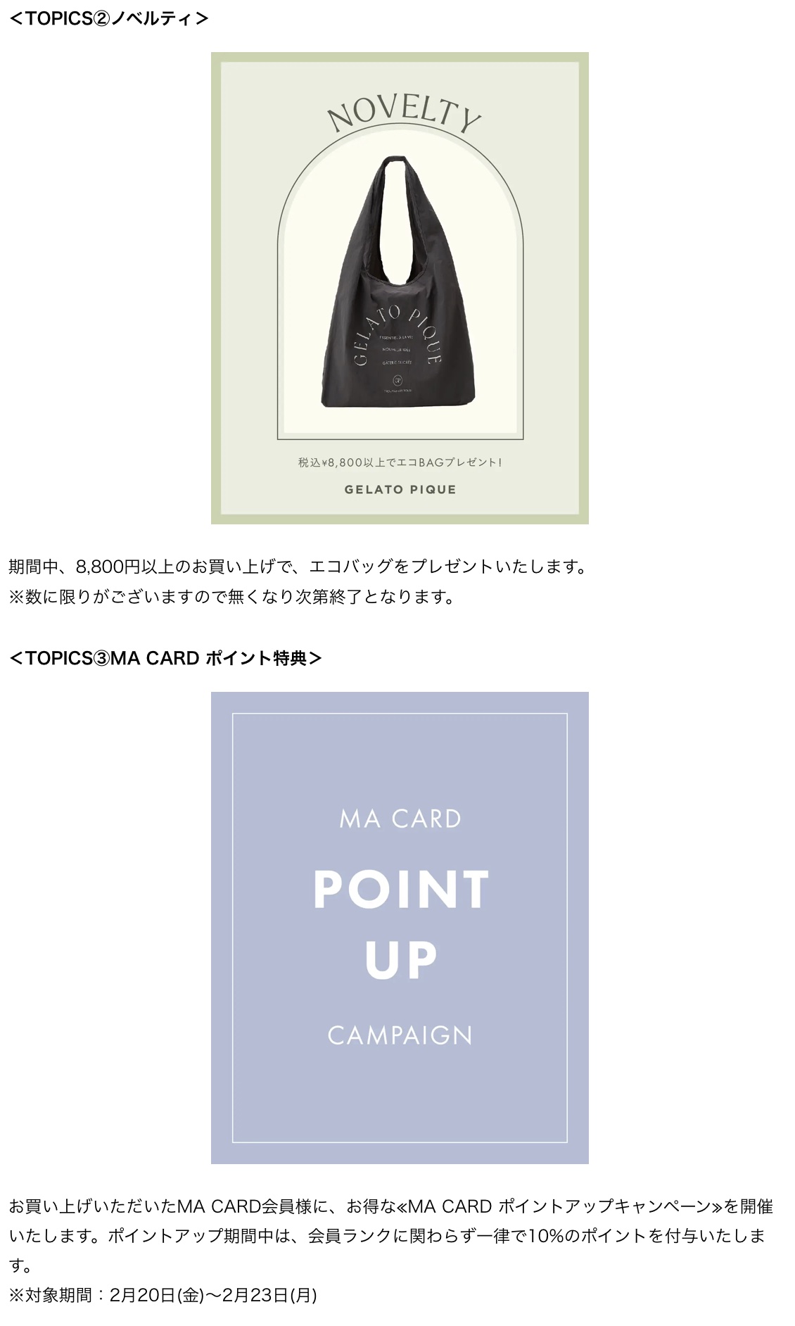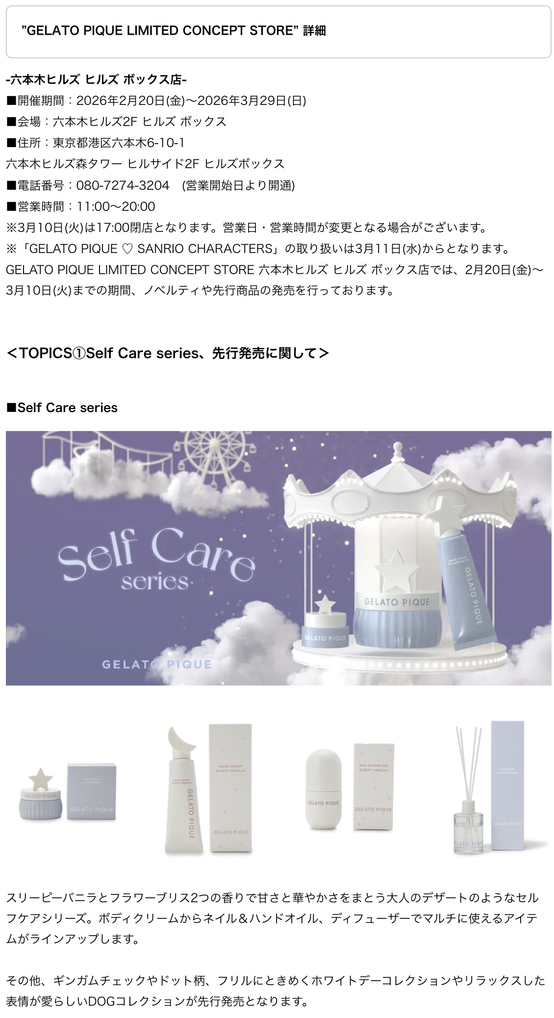 変更が発⽣した場合は、gelato pique公式サイトおよび公式インスタグラムにてお知らせいたします。
