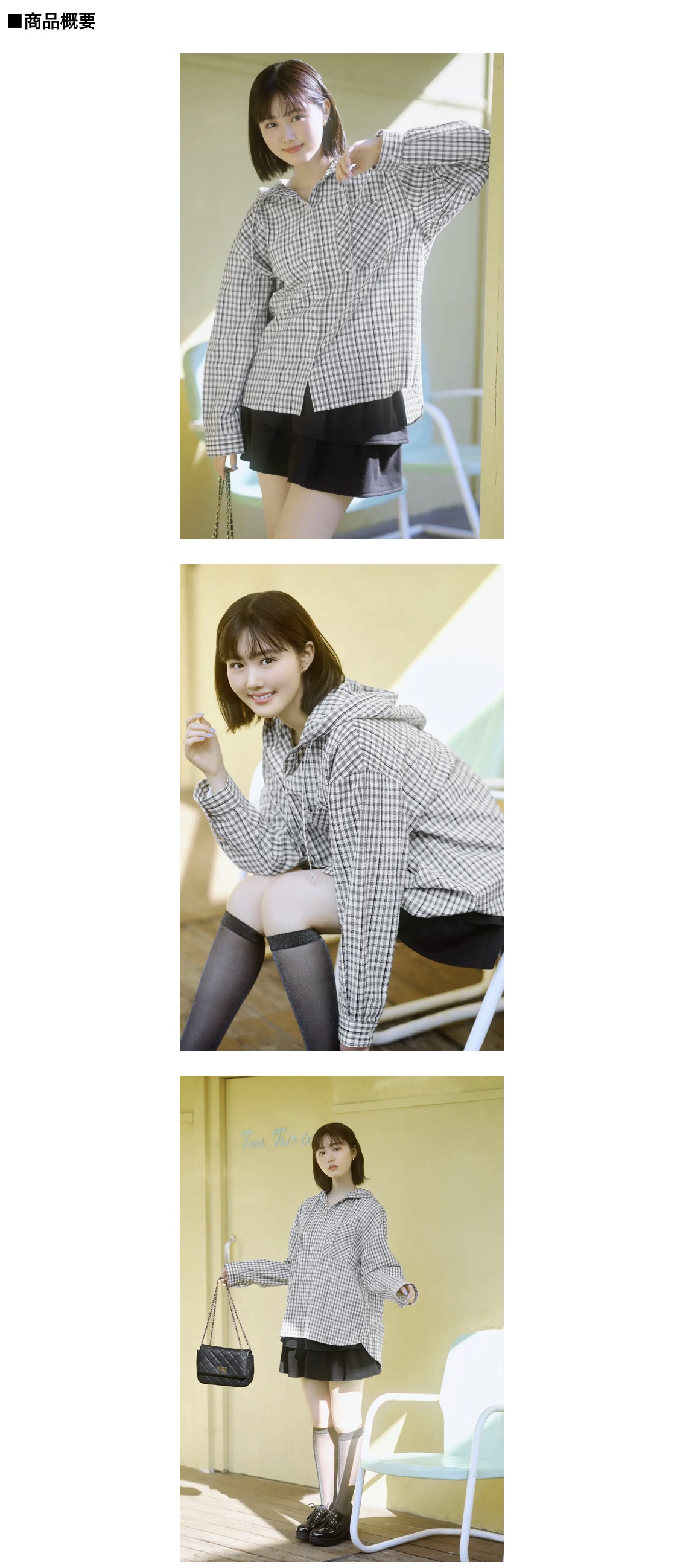 原菜乃華さんコラボカラーの“コンチェック”のフード付きシャツは、さらりと軽いサッカー素材とゆるめシルエットで、着るだけでコーディネートがキャッチーに。羽織って抜け感も、一枚で主役も、着こなしが簡単に整うのが魅力。週末やおでかけに頼れる、春の空気にちょうどいい一着です。
