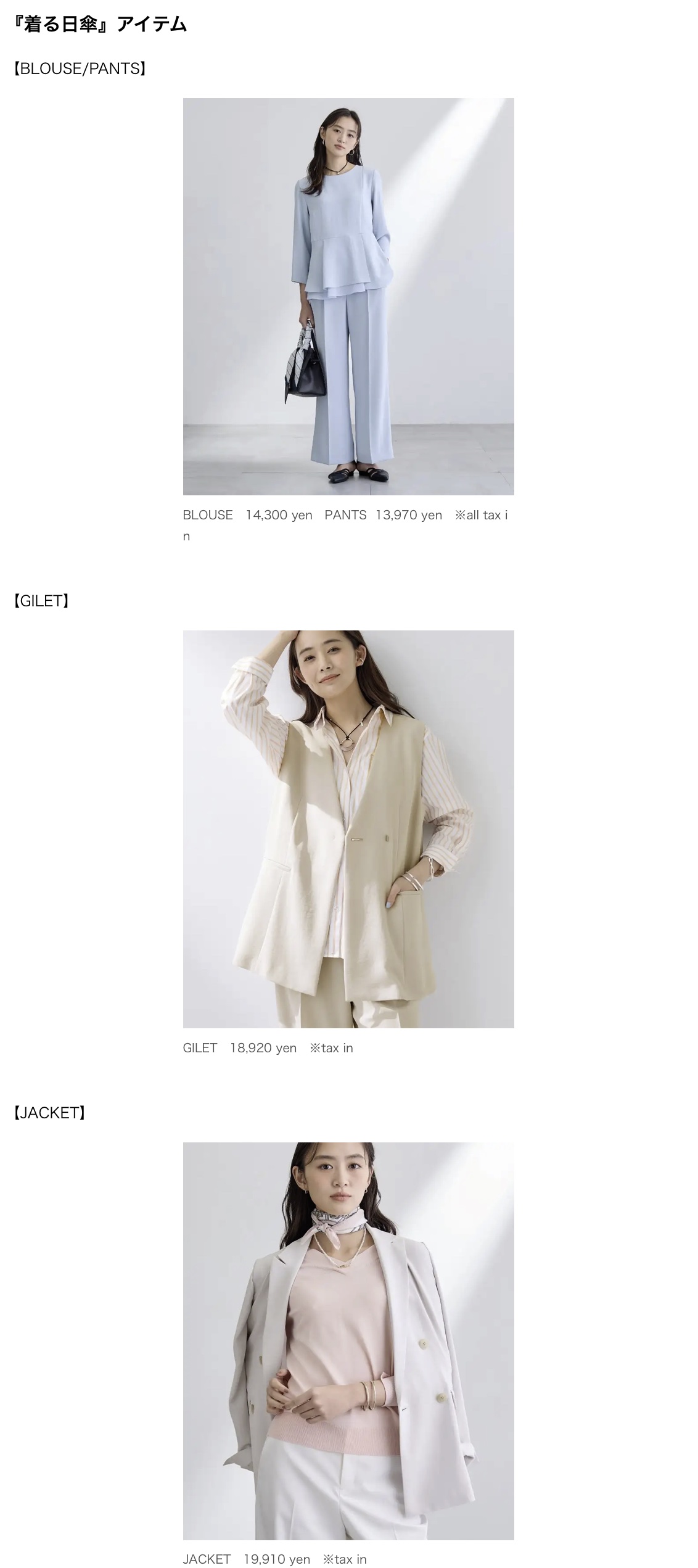 快適な通勤が叶う『着る日傘』シリーズが今年も登場!赤外線を反射する遮熱性と、紫外線をしっかり遮蔽するUVケア機能で、まるで日傘を着ているような安心感。爽やかな着心地が続きます。ブラウス、ジレ、ジャケット、パンツ、ワンピースと豊富なラインアップの着る日傘シリーズはすべてマシンウォッシャブル。ケアしやすい素材で残暑まで長くご愛用いただけます。