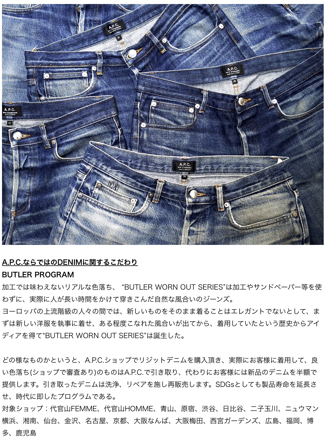 株式会社ルックホールディングス <A.P.C.>ブランドの代名詞であるデニム 2026年2月26日(木)よりA.P.C.各ショップにて"A.P.C. DENIM FOCUS"イベント開催 (2026.2)