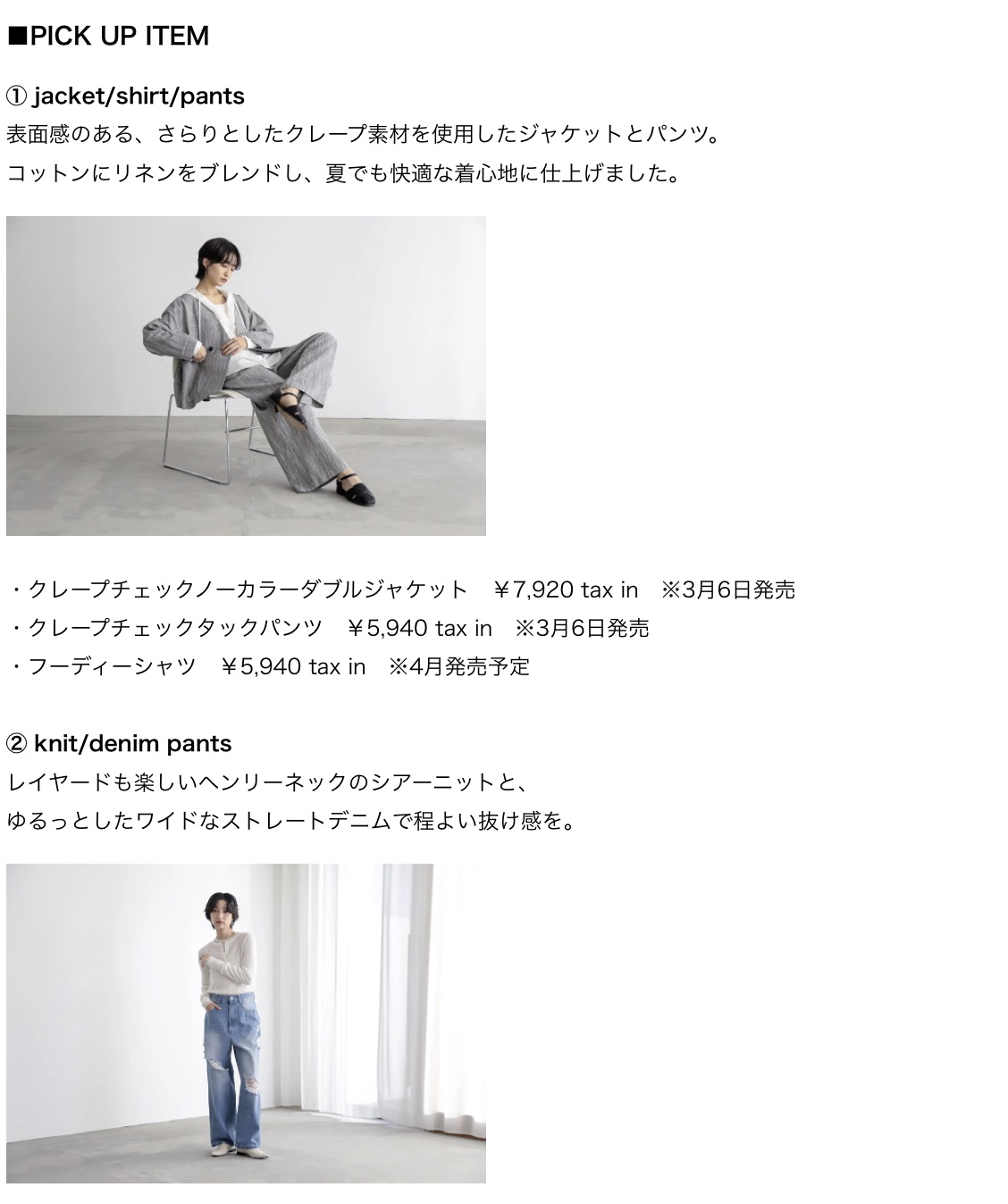 for/cらしいシンプルさを軸に、シルエットやディテールで“さりげないかわいさ”と“少しの今っぽさ”を添えたラインナップです。