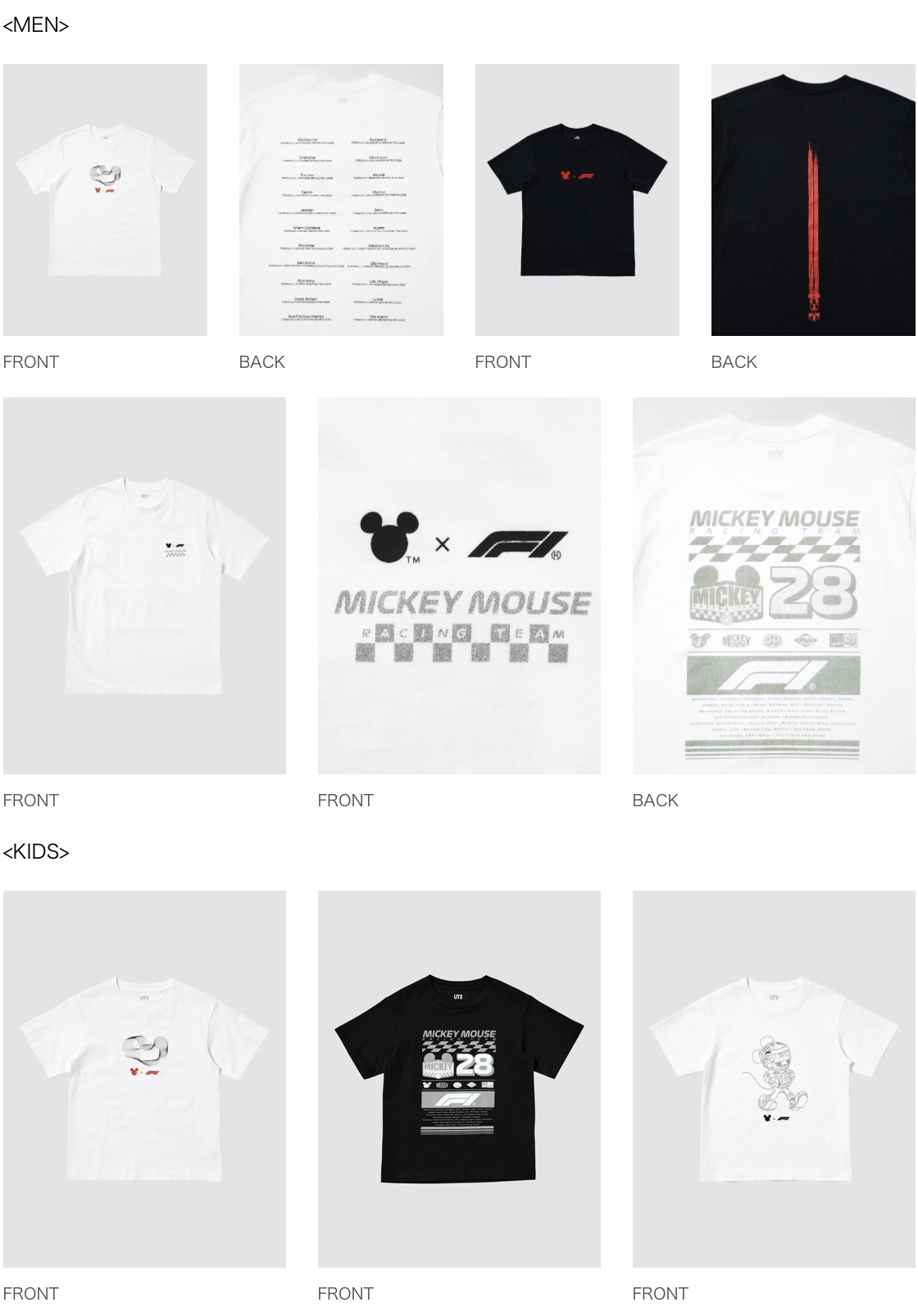 株式会社ユニクロ ディズニーとFormula1®、ユニクロが初のタッグを組んだコレクション「Disney x Formula1® UT」 3月23日(月)より発売 (2026.3)