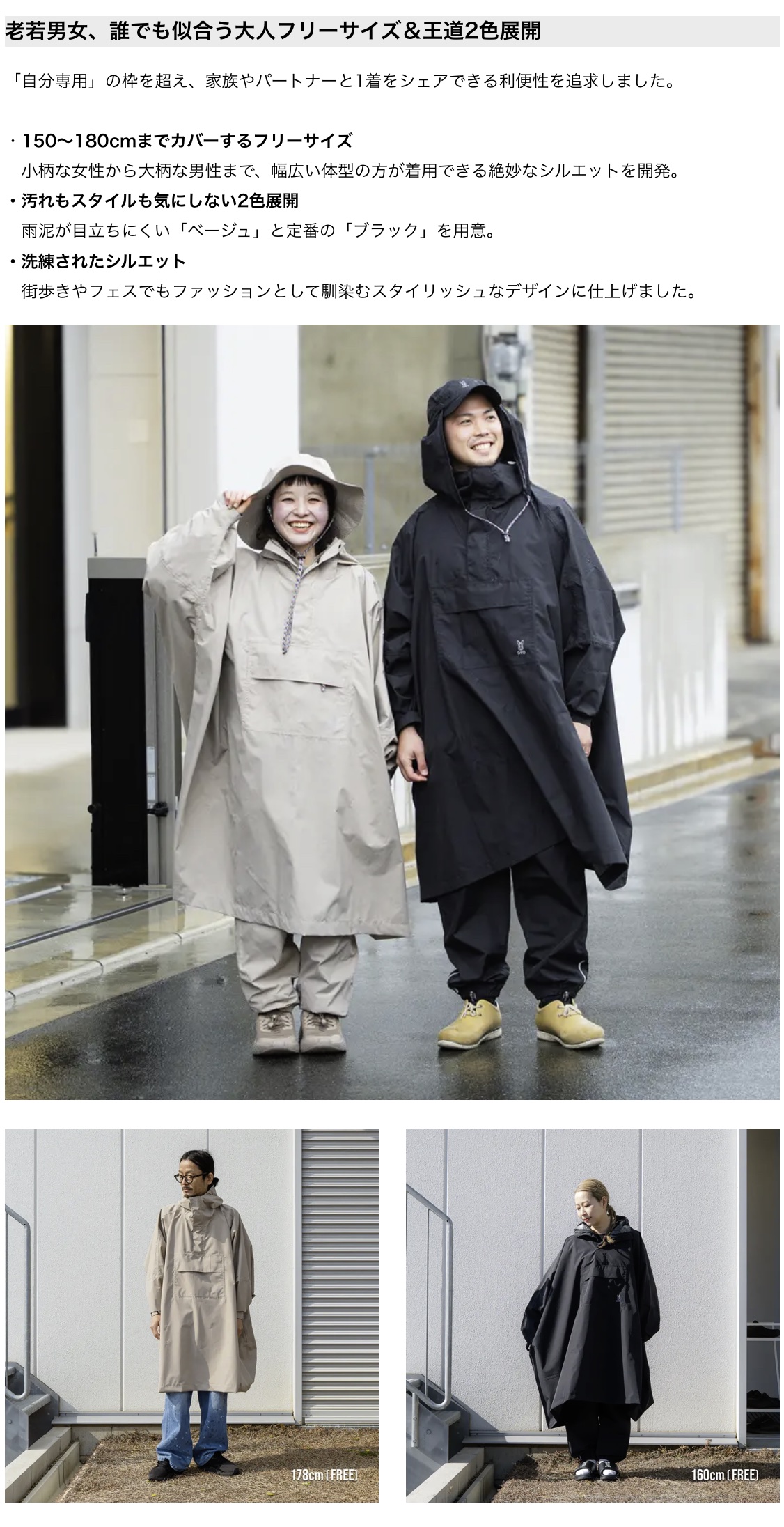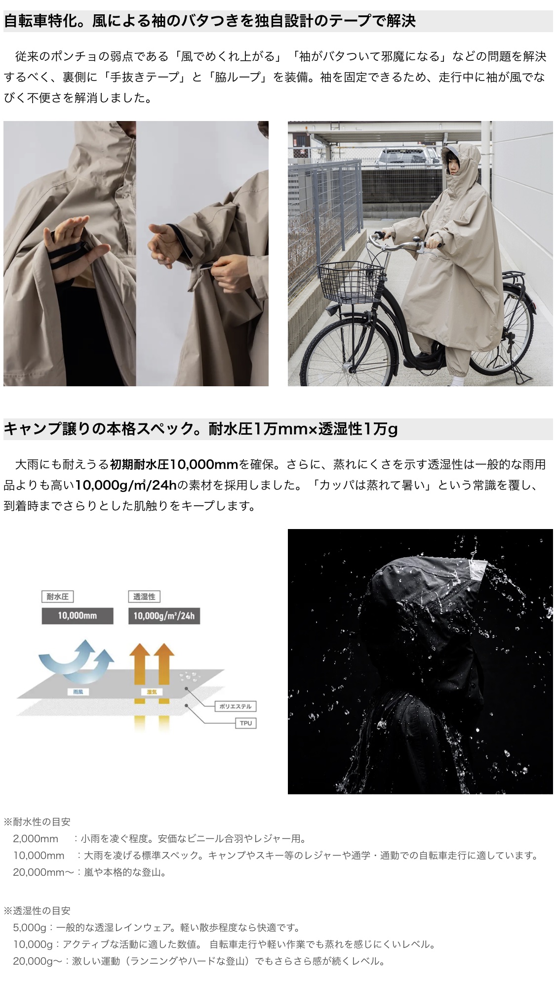ビーズ株式会社 「自転車の傘差し運転罰則化」の救世主!キャンプ基準の防水性能を備えたレインウェア「カッパーダ・ポンチョ」発売。 〜2026年4月の法改正に対応。自転車走行を想定した独自仕様と街着使いもできるデザインで雨の日をストレスフリーに〜 (2026.3)