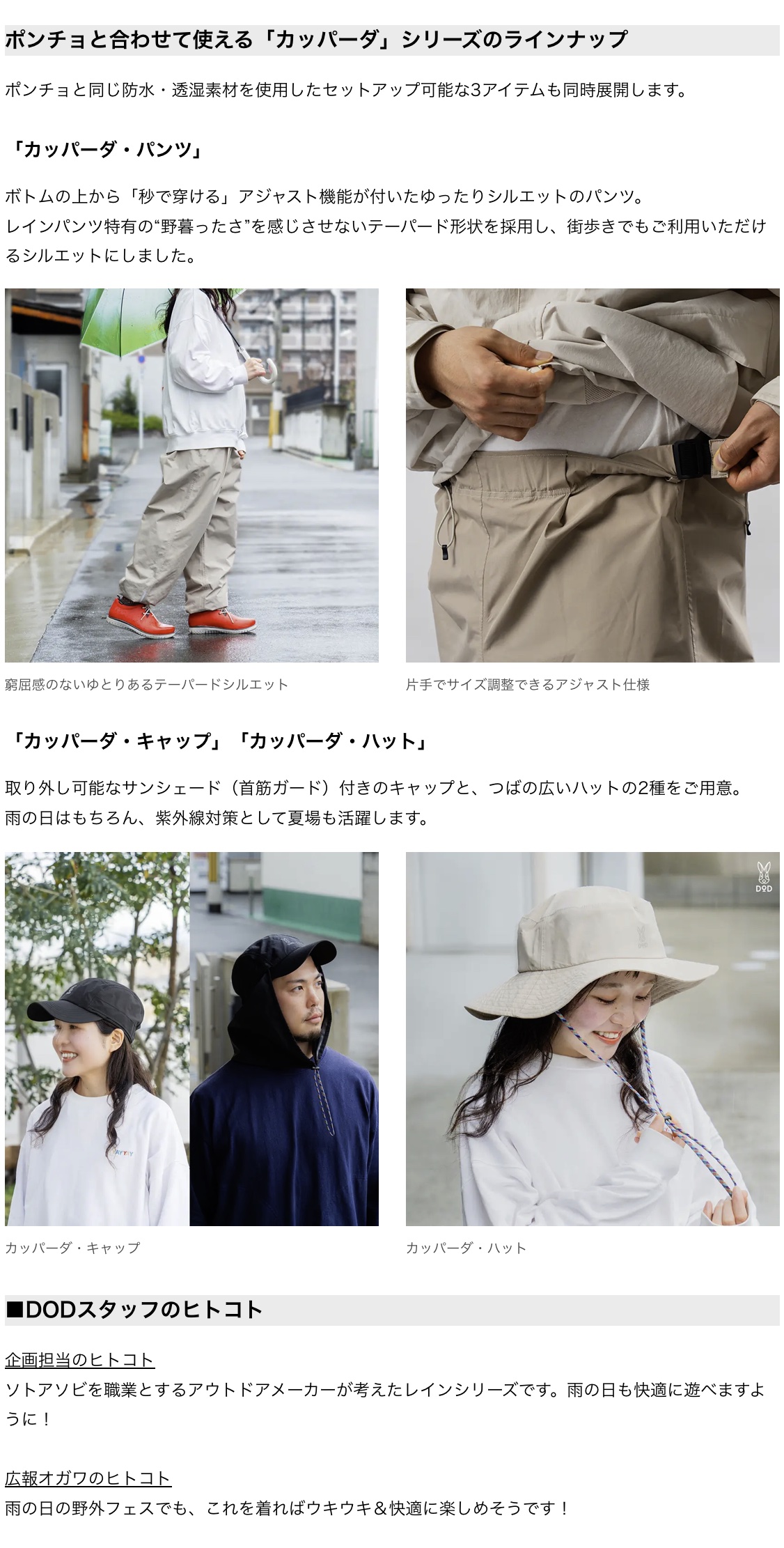 「カッパーダ・ポンチョ」 https://www.dod.camp/product/jk201/