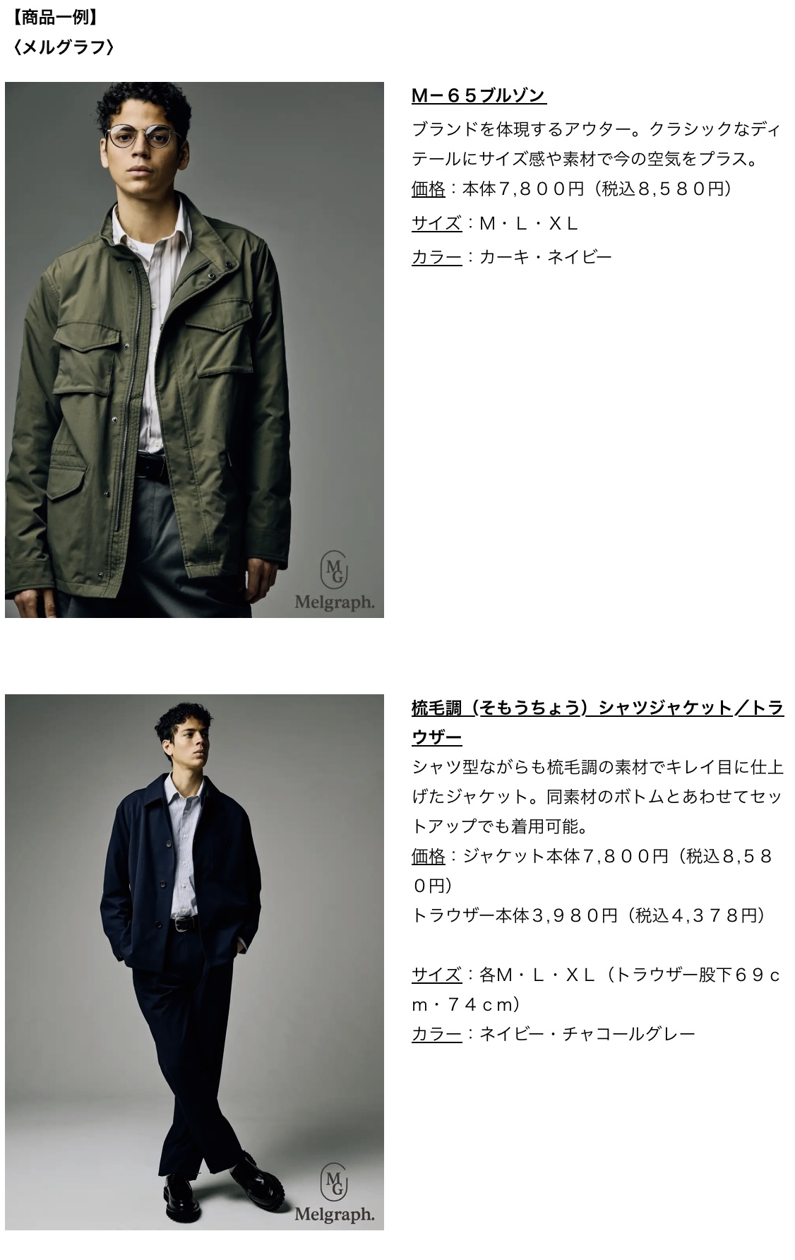 イオン株式会社 【イオンリテール】メンズカジュアルブランド「Melgraph.(メルグラフ)」誕生 40代・50代向けの流行と伝統を融合し洗練されたカジュアルスタイル (2026.3)
