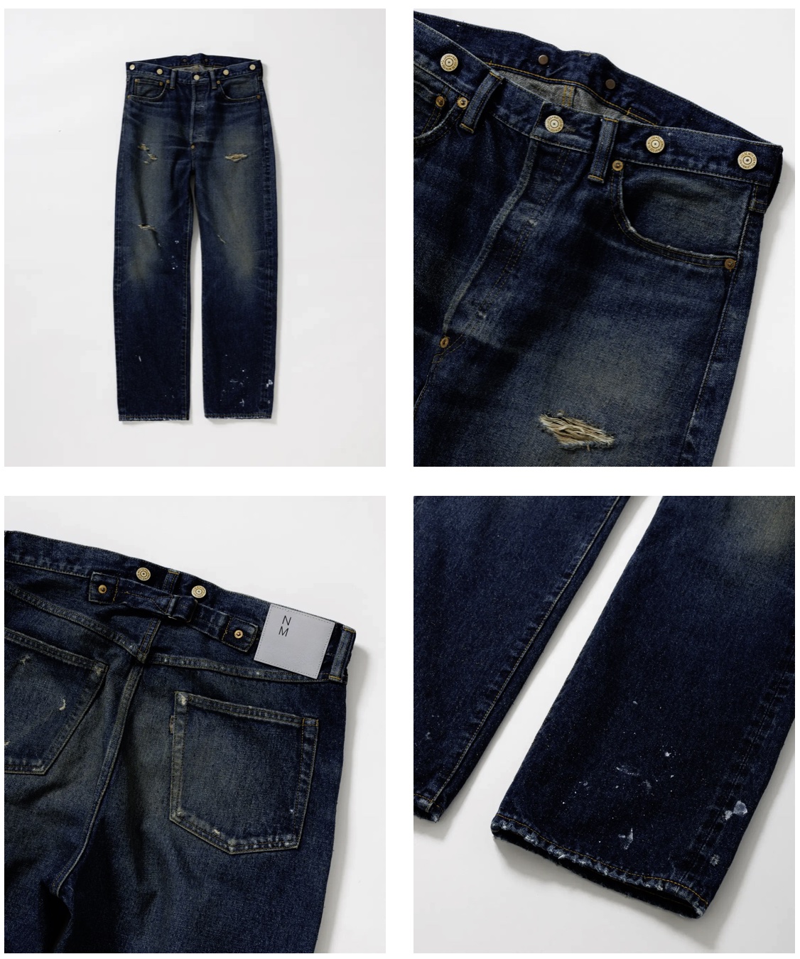 さらに、太もも部分やポケット位置のダメージや裾のペイントは、着用者の実際の使用感をダイレクトに感じられる細やかなディテールとして本別注のポイントの一つです。
