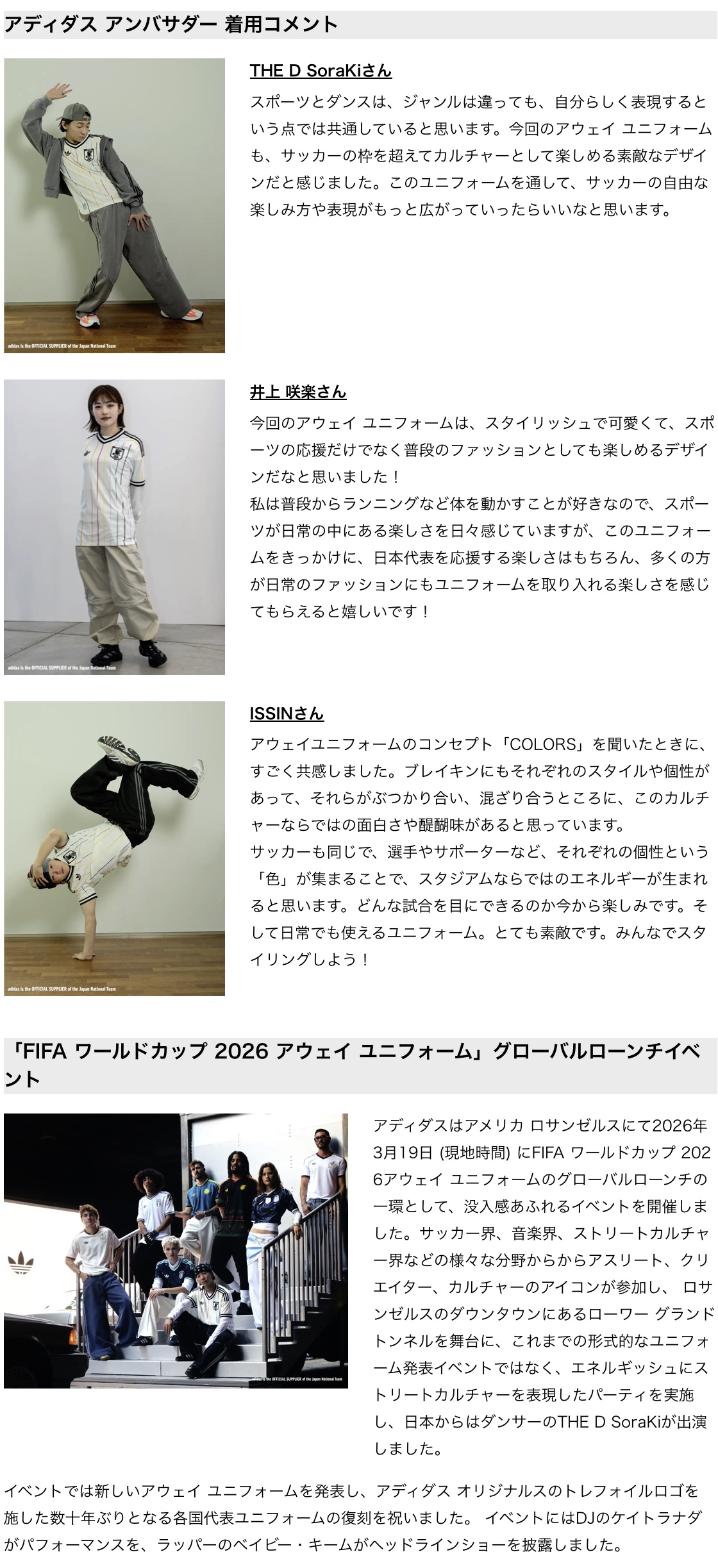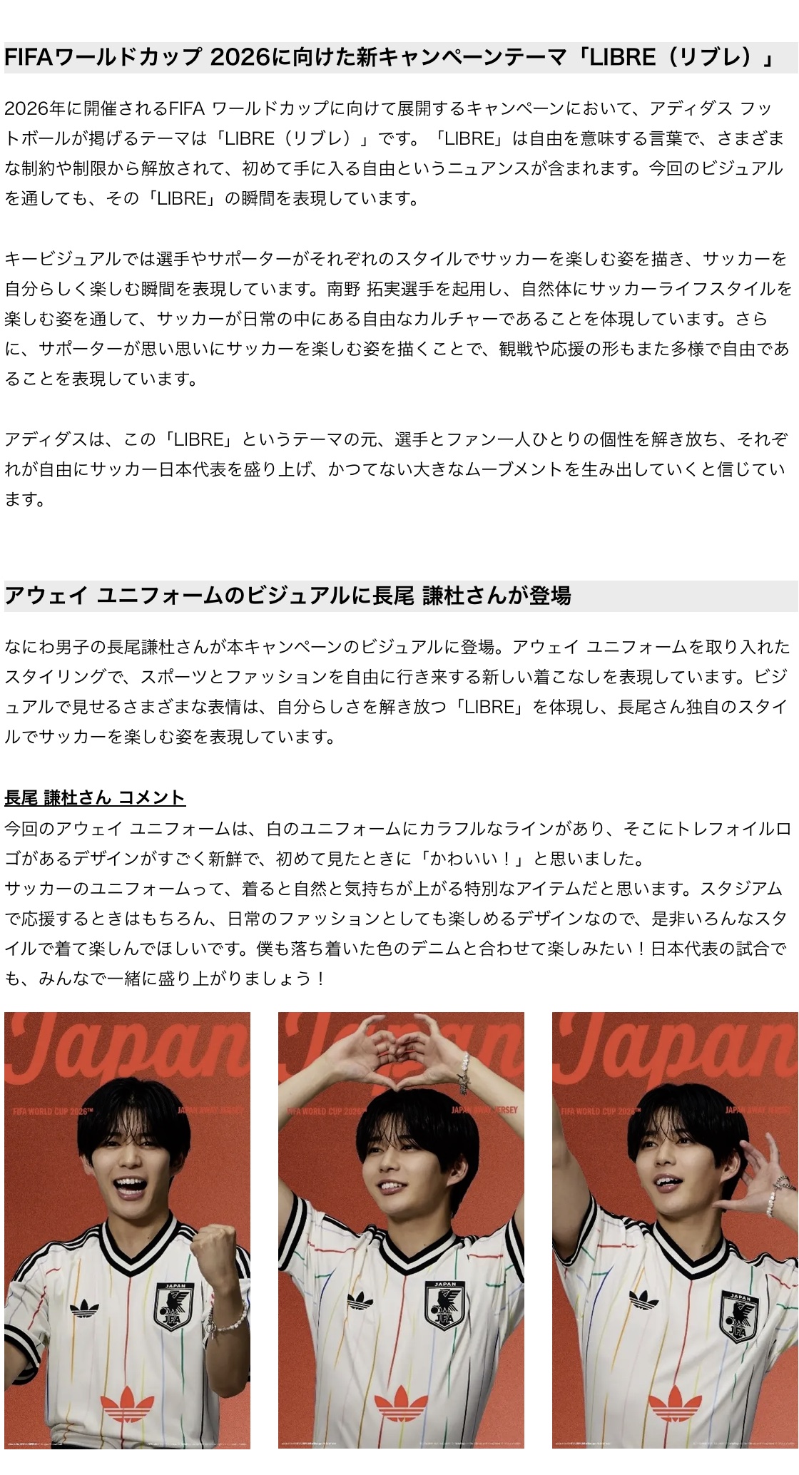 ーアディダス サッカー日本代表関連商品: https://www.adidas.jp/サッカー日本代表