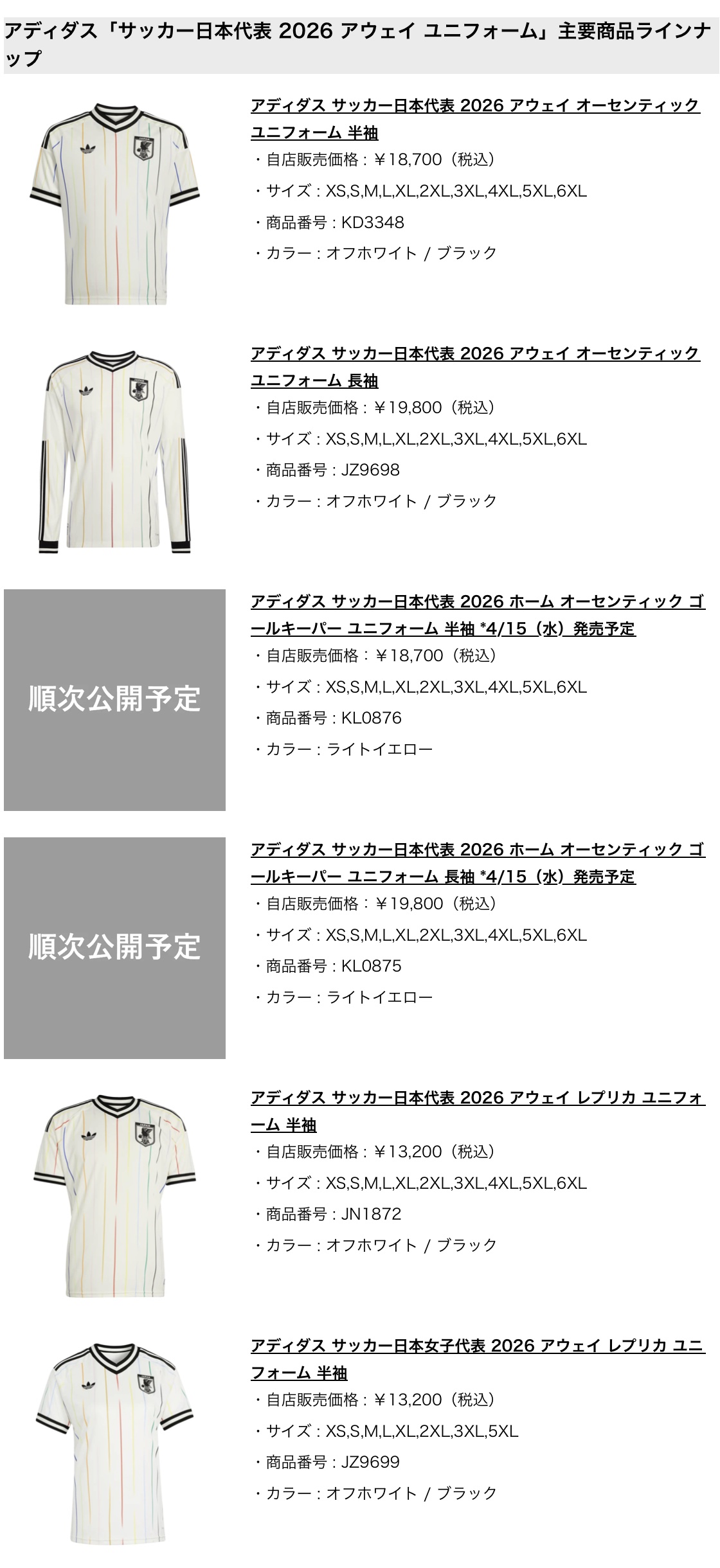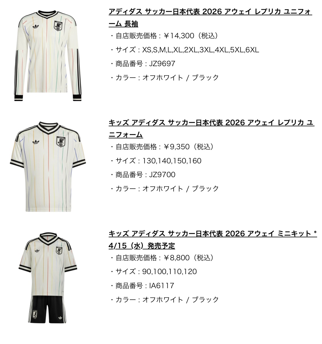 ーFIFA ワールドカップ 26 コレクション: https://www.adidas.jp/fifa_world_cup