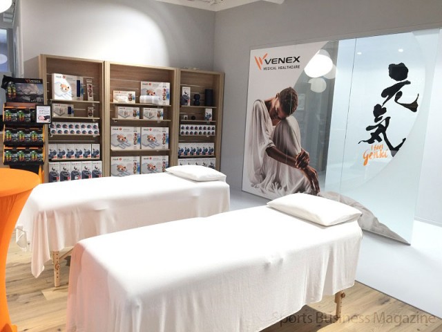 同店ではウエア販売のほか、施術スペース(2部屋)を設置。同社製品を使ったマッサージなどのサービスを理学療法士が提供する。同社の生地を使った治療器具を現地の素材メーカーと共同開発。器具の販売のほか、施術サービスにも使用する。施術は理学療法士が考案した内容で、店舗においてこうしたサービスを提供するのは初めての試みだ。
