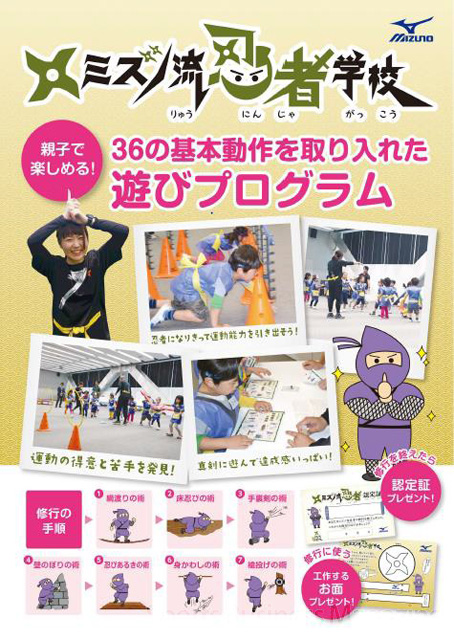 八女市のケースでは、スポーツを通じた健康意識の増進、スポーツ健康施設の維持・活用を主な共通課題に掲げている。子供向けのコンテンツでは、嬉野市と同様、ミズノの独自プログラム「ヘキサスロン」や「ミズノ流忍者学校」などを提供する。また一般向けでは、ランニングやウオーキングなど、効果的な運動の仕方を提供・指導する。