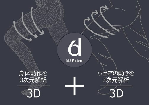 デサントジャパンが「デサント」ブランドにおいて、「6Dパターン」設計の新しいパンツを開発した。身体の動き(3D)と、ウエアの動き(3D)を組み合わせた、独自のパターンを採用した。