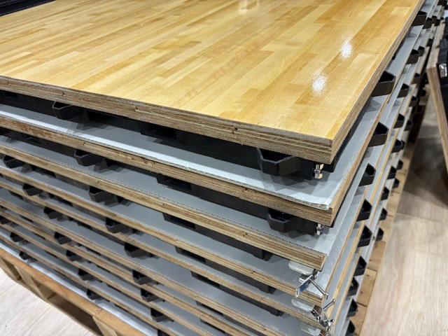「ポータブルスポーツフロア」とは、コンクリートの床に敷いて室内競技用のコートを設置できる木製フロアのこと。セノーは以前、1986-2000年にかけてポータブルスポーツフロアを販売していたが、FIBAの「LEVEL 1」認定を取得するには至らなかった。今回は再挑戦で、4年の開発期間をかけて、プラスチックメーカーの岐阜プラスチック工業株式会社と共同開発した。