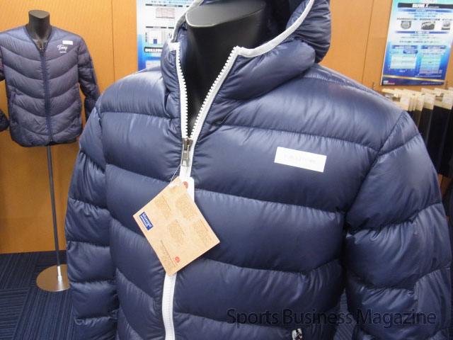 高密度ナイロン織物では、単糸が1.1dtex(デシテックス)よりも細い(0.5 dtex)糸を使った「シルファイン プレミアム™」を新たに提案した。従来よりも薄手の織物で、さらに軽量に仕上がった。また、0.7 dtexの仮撚り糸を使用しストレッチ性を持たせた「シルファイン プレミアム プラス™」も併せて開発・提案している。そのほか、「Locky」(ロッキー)シリーズは、穴が開いた時の自己修復力に優れている。“X”断面糸を使用した「シルファイン®エックス」は、縫製糸の通った穴が自己修復能力によりふさがるため、隙間からダウンが抜け出にくくなる効果がある。