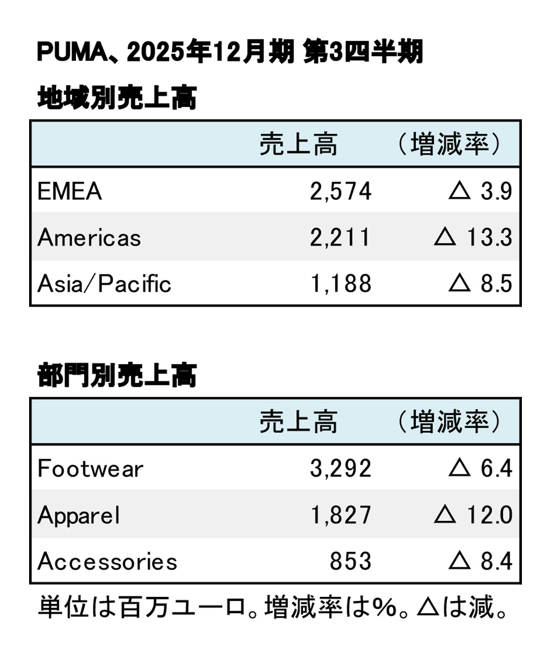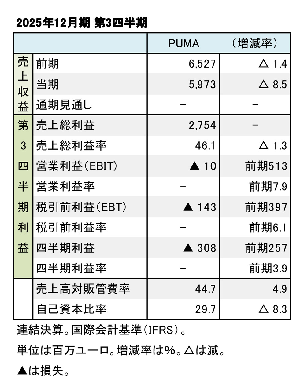 PUMA、2025年12月期 第3四半期──減収、損失を計上